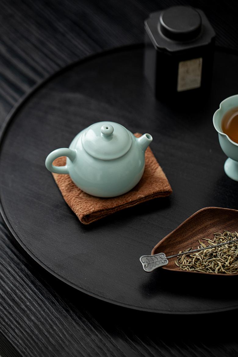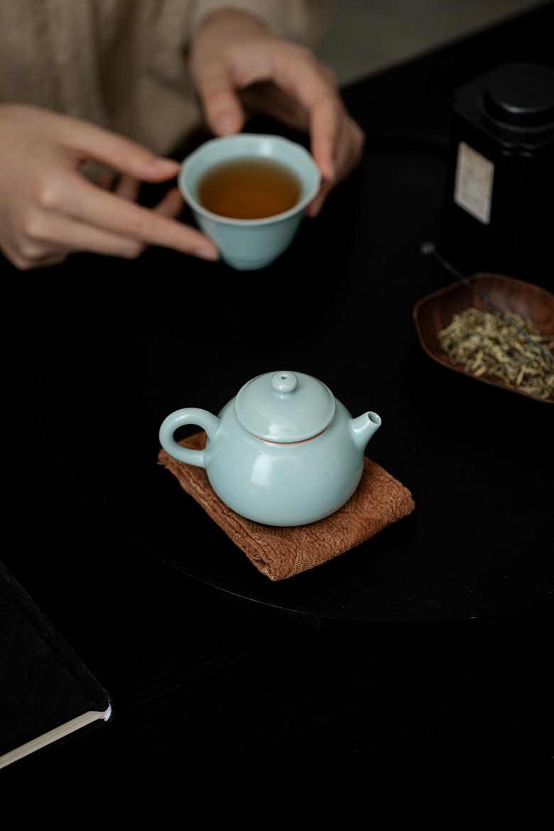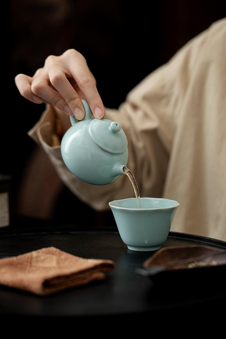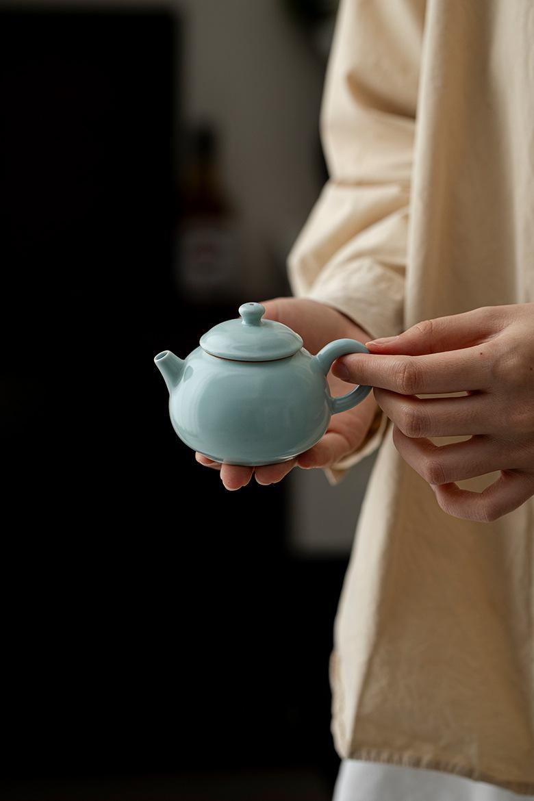 Bule de Cerâmica Esmaltada Verde Mo Jilan Conjunto de Chá Kung Fu Doméstico Pote Palácio com Filtro de Furos de Bola Bule Portátil