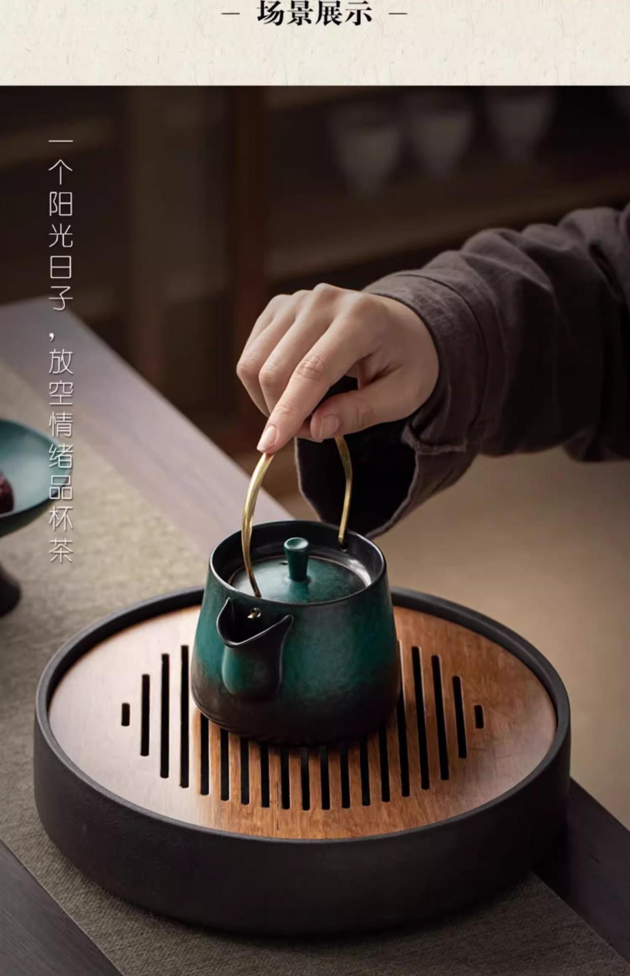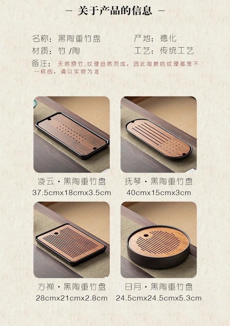 Sun and moon heavy bamboo disc, Fuqin heavy bamboo black pottery tea tray, Fang zen heavy bamboo black pottery...