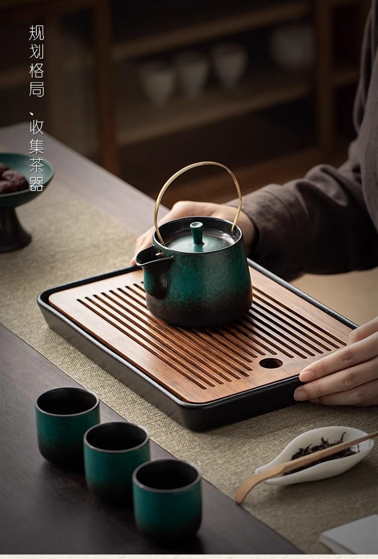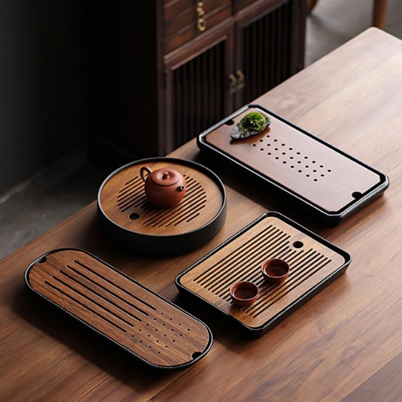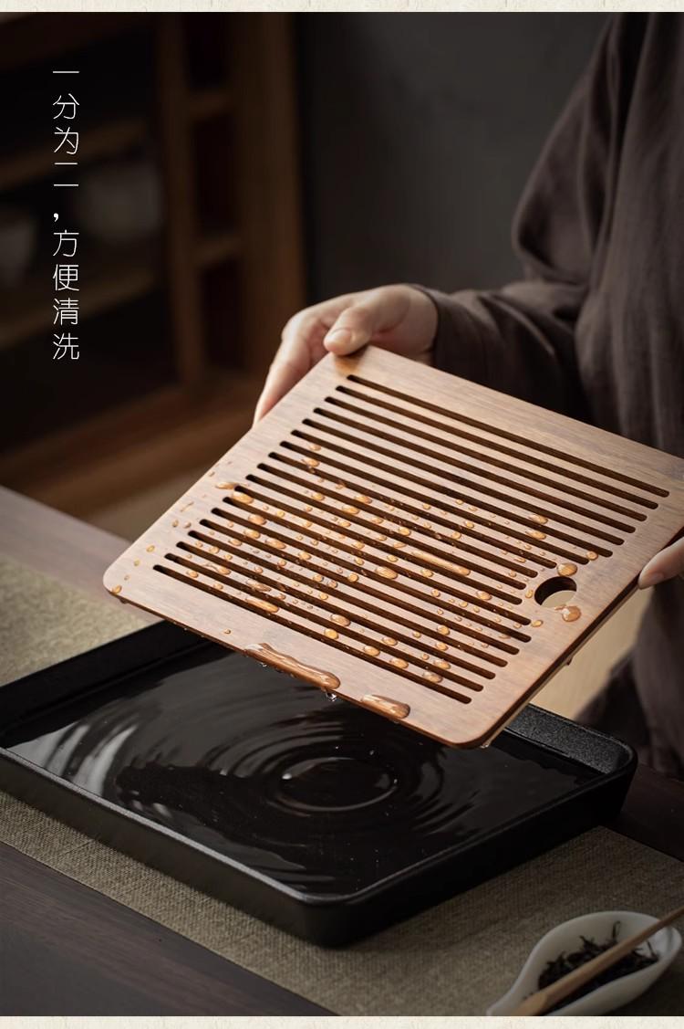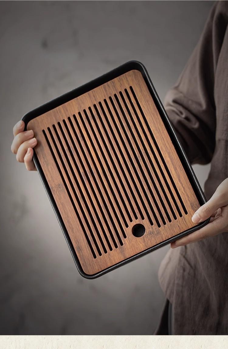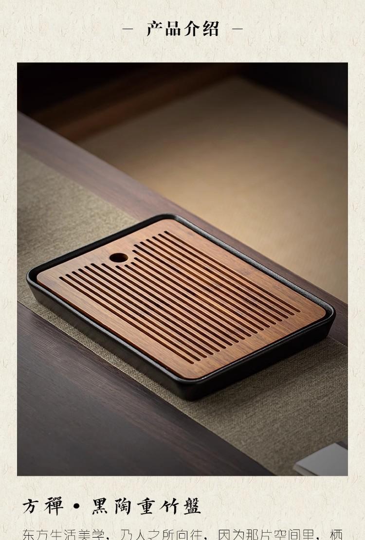 Fang zen heavy bamboo black pottery tea tray