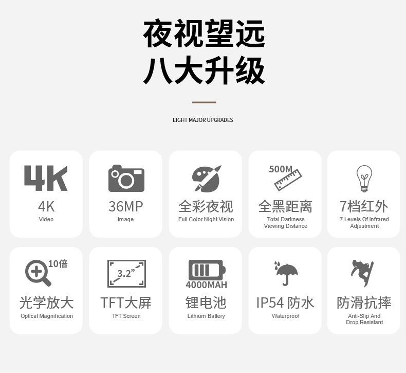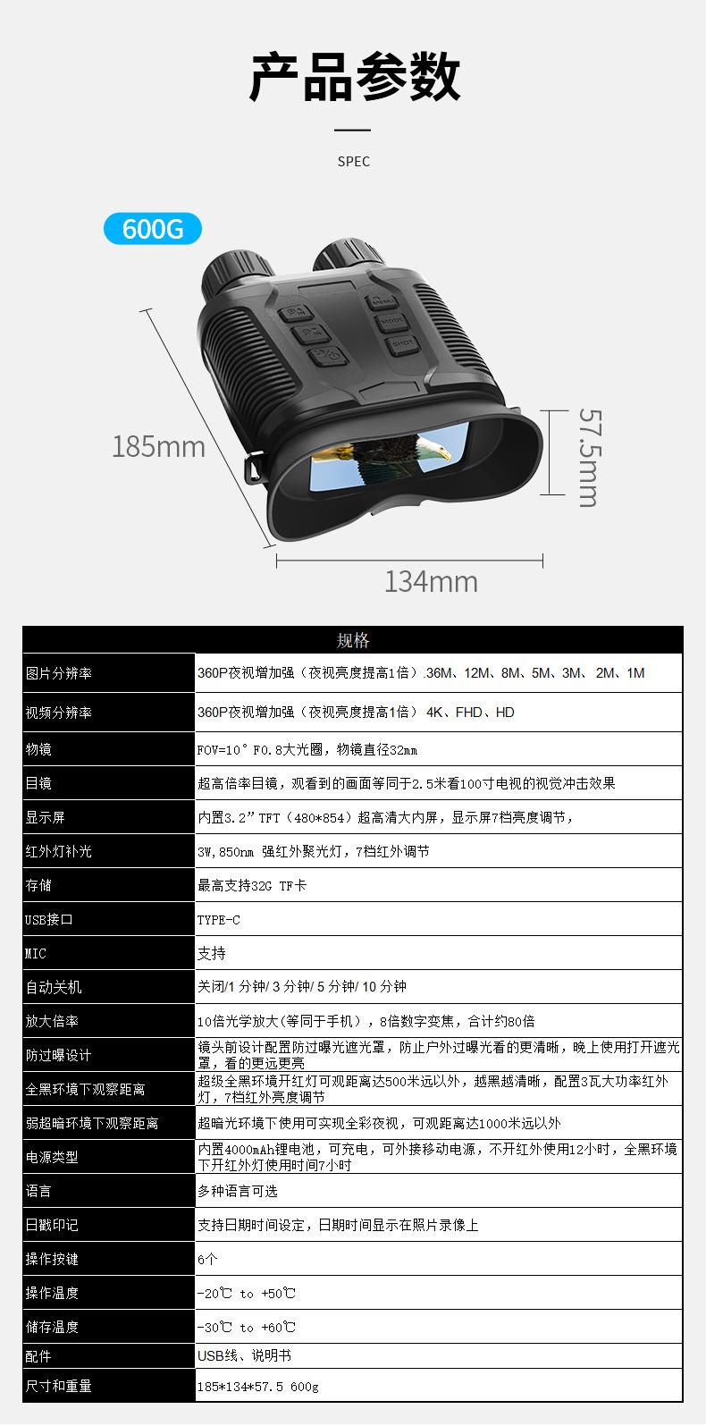 Binóculo 4K de Alta Definição Transfronteiriço Dispositivo de Visão Noturna de Tela Grande Telescópio de Visão Noturna Infravermelha Totalmente Preto Estilo Camping Pesca Noturna ao Ar Livre Observação de Pássaros