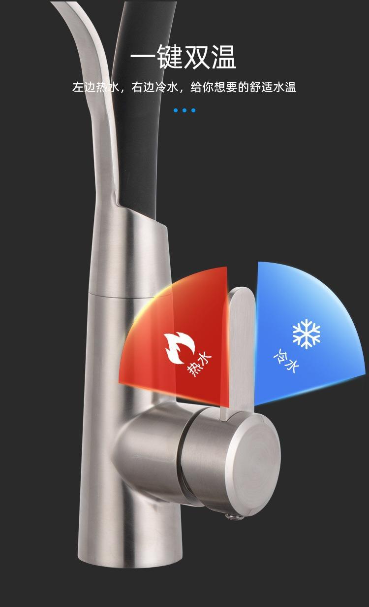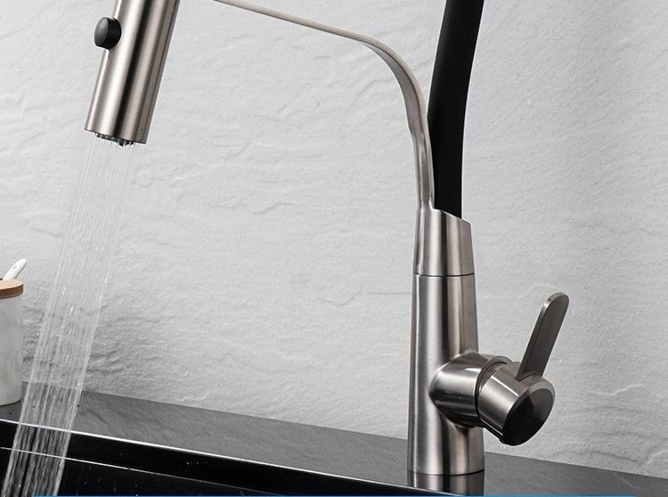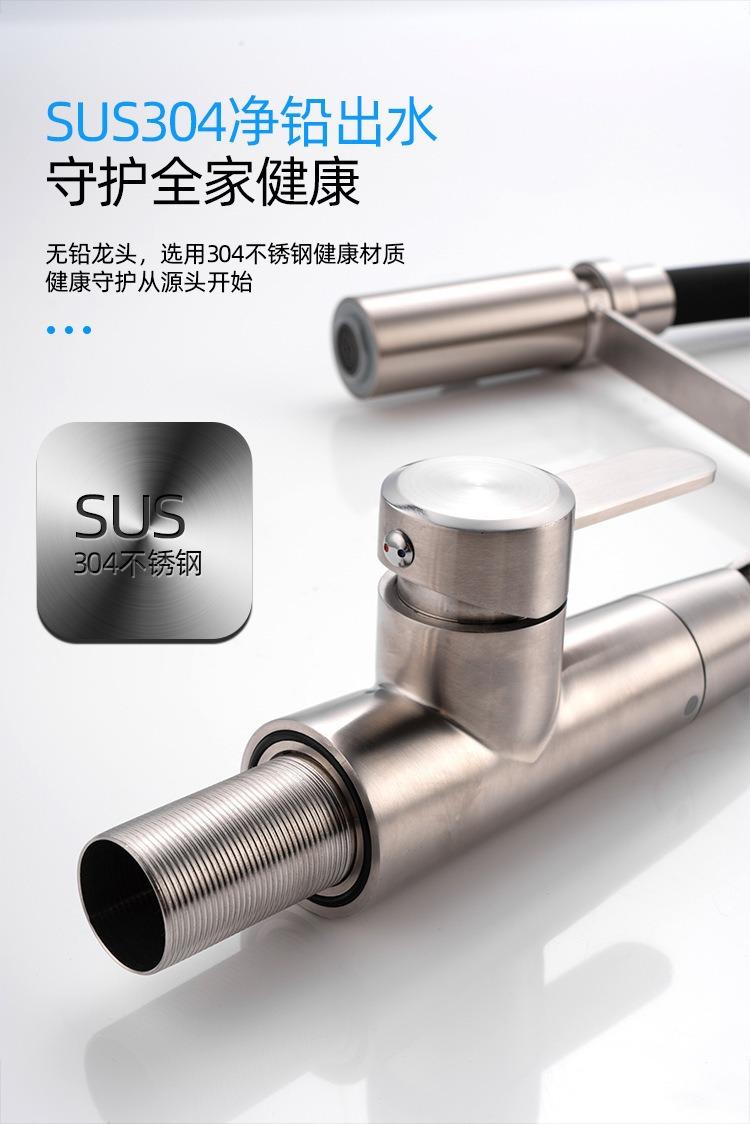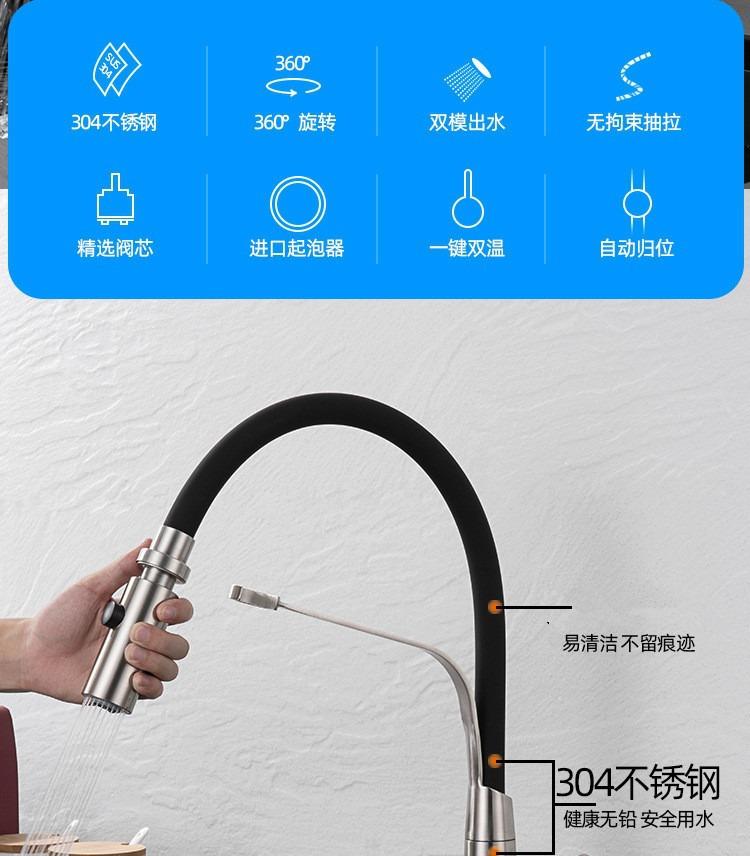 Torneira de Cozinha Russa Transfronteiriça de Aço Inoxidável 304 Quente e Fria Escovada Telescópica Tubo Universal de Silicone Torneira para Pia