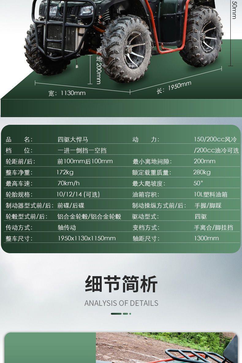 Motocicleta Quadriciclo Longding 4x4 250cc-350cc Off-Road Quadriciclo Transmissão por Eixo Veículo Todo-Terreno