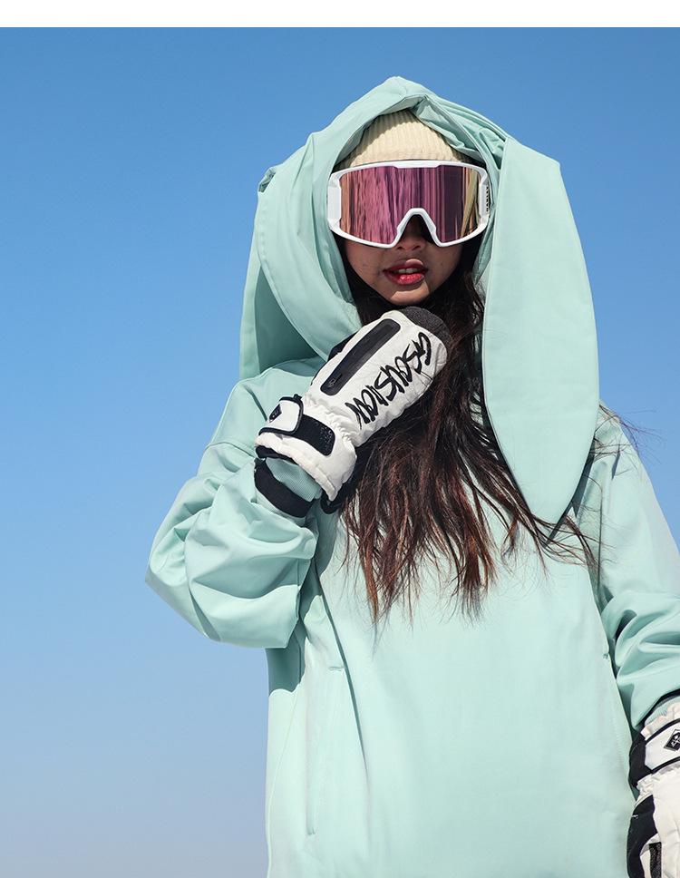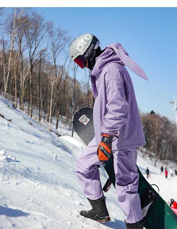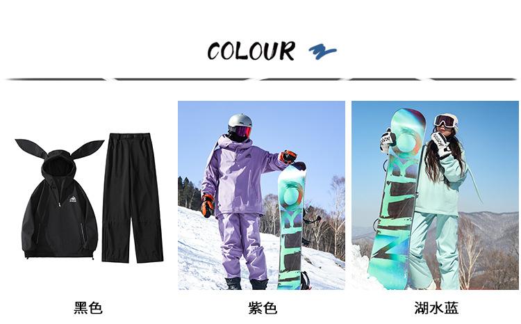 Celebridade da Internet Novo Trendy Corta-vento e Quente Macacão de Neve Orelha de Coelho para Homens e Mulheres, Conjunto de Macacão de Esqui Forrado com Lã, Macacão de Neve Estilo Casal