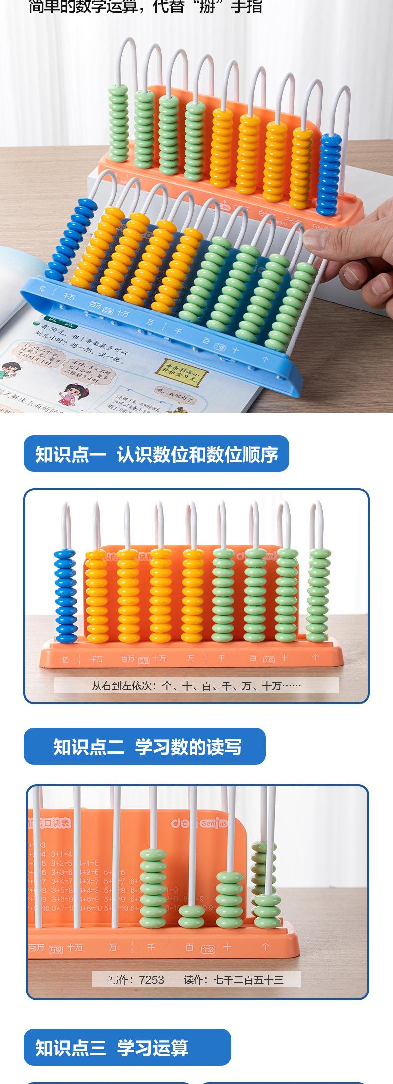 Compre Deli YX508 Contador de Aprendizagem Infantil Auxílio Didático de Aritmética Estudante Primeira Série Manual Matemática Quadro de Cálculo Multilinhas no atacado no Joom.pro