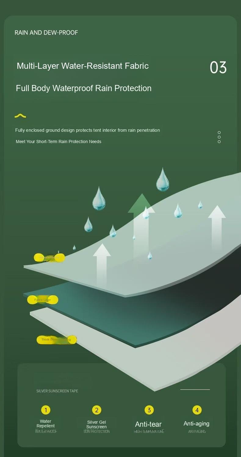 Índice de impermeabilidade da barraca externa: 1500 mm (inclusivo) -2000 mm (exclusivo)