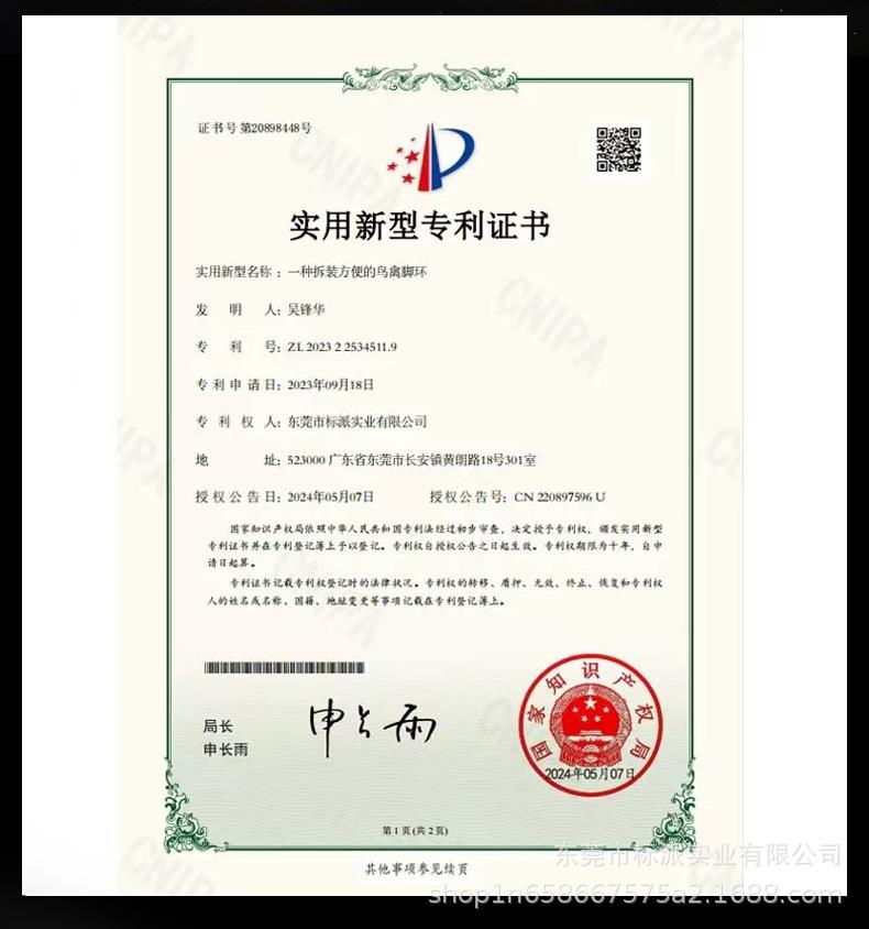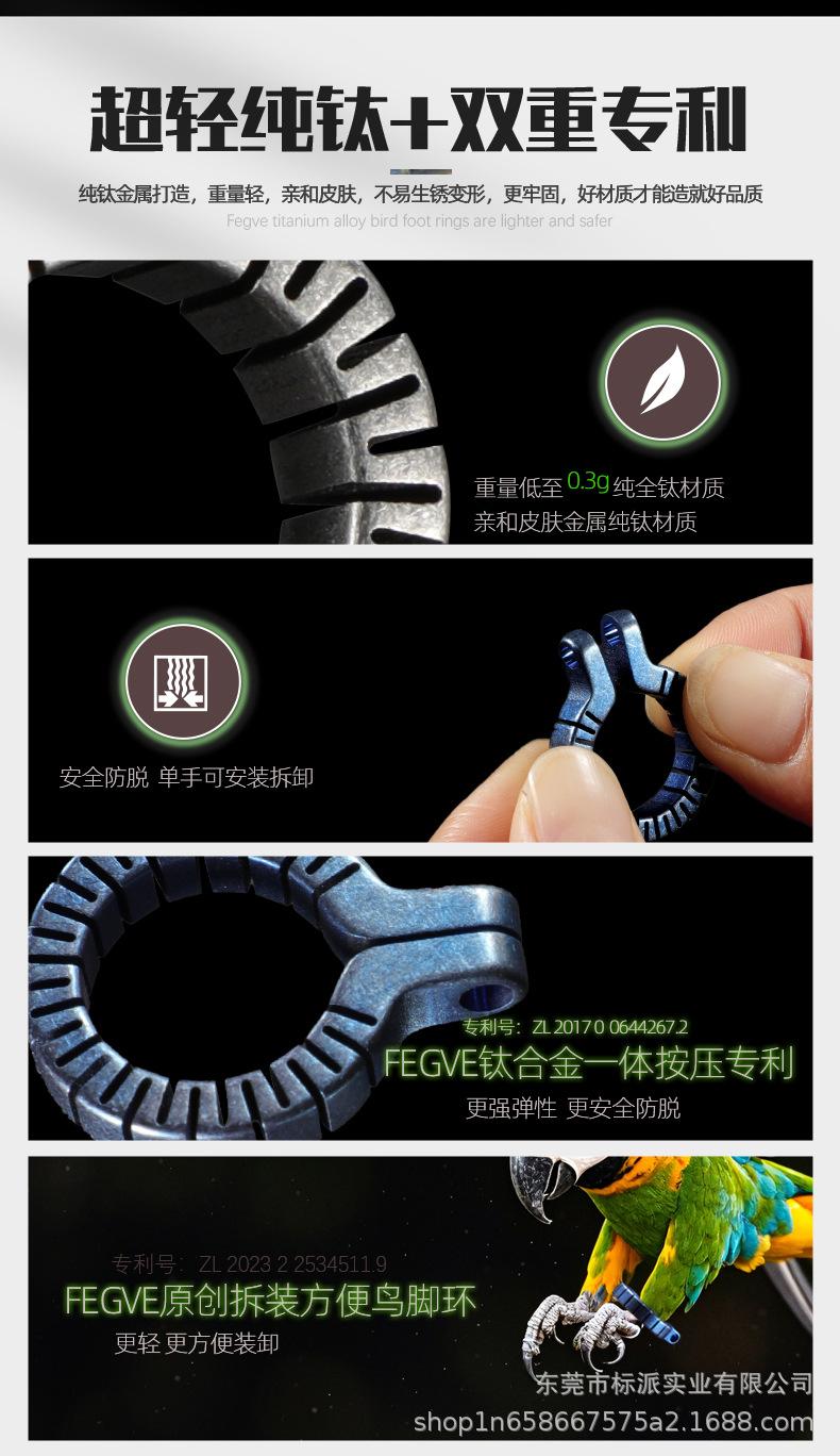 Novo Anel de Pé de Pássaro de Liga de Titânio Puro Xuanfeng Papagaio Sol Pequeno Estorninho Tigre Pele Du Dan Anti-queda Prenda Anel de Pássaro