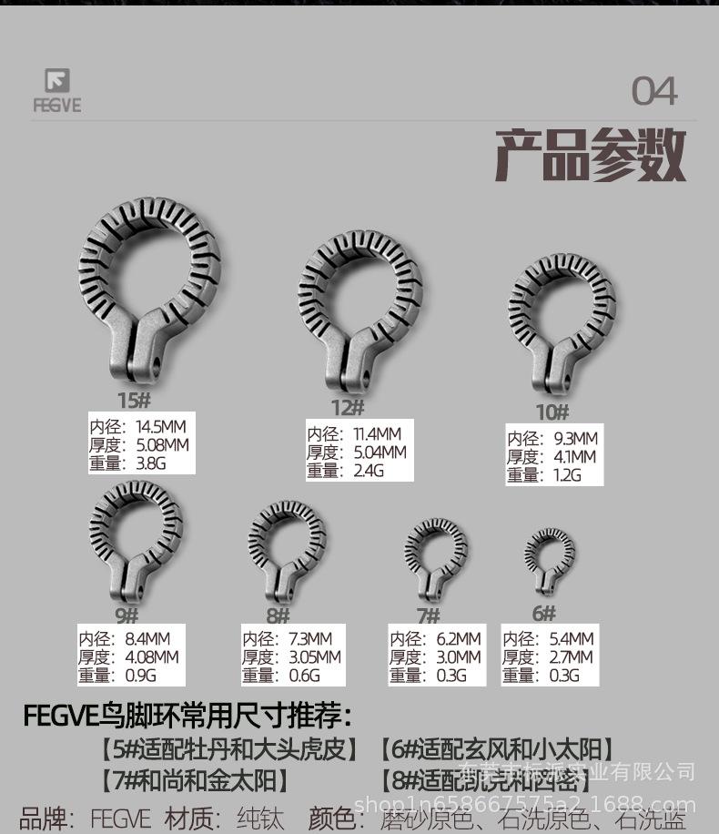 5#PZ137 titanium frosted bird foot ring inner diameter 4.5 2 10mm primary titanium coils [for big head tiger s...