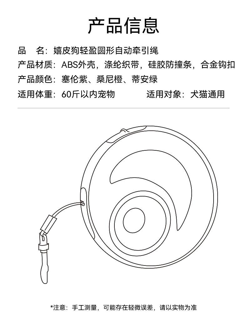 Suprimentos para Animais de Estimação Transfronteiriços Leve e Redonda Trela Retrátil Automática para Cães ao Ar Livre Corda de Passeio para Cães Teddy Dispositivo de Tração