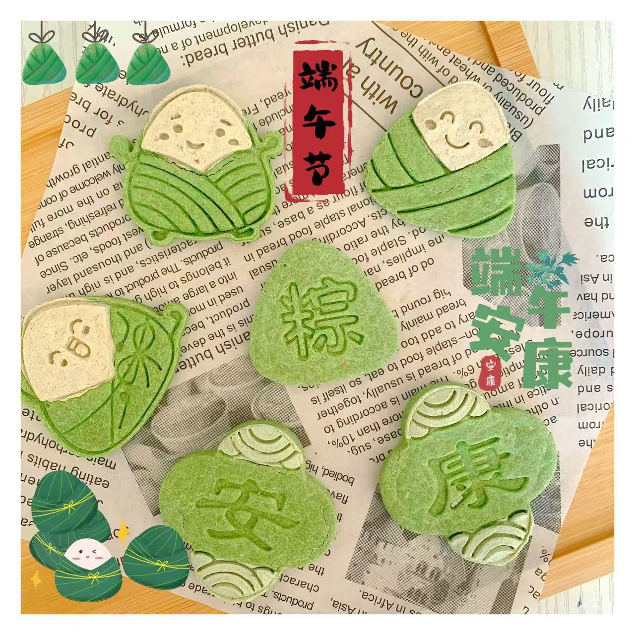 Biscoitos zongzi caseiros feitos à mão para o Festival do Barco Dragão, sem aditivos, petiscos para cães e gatos, biscoitos assados estampados