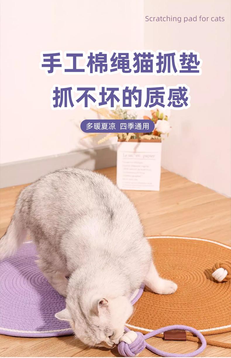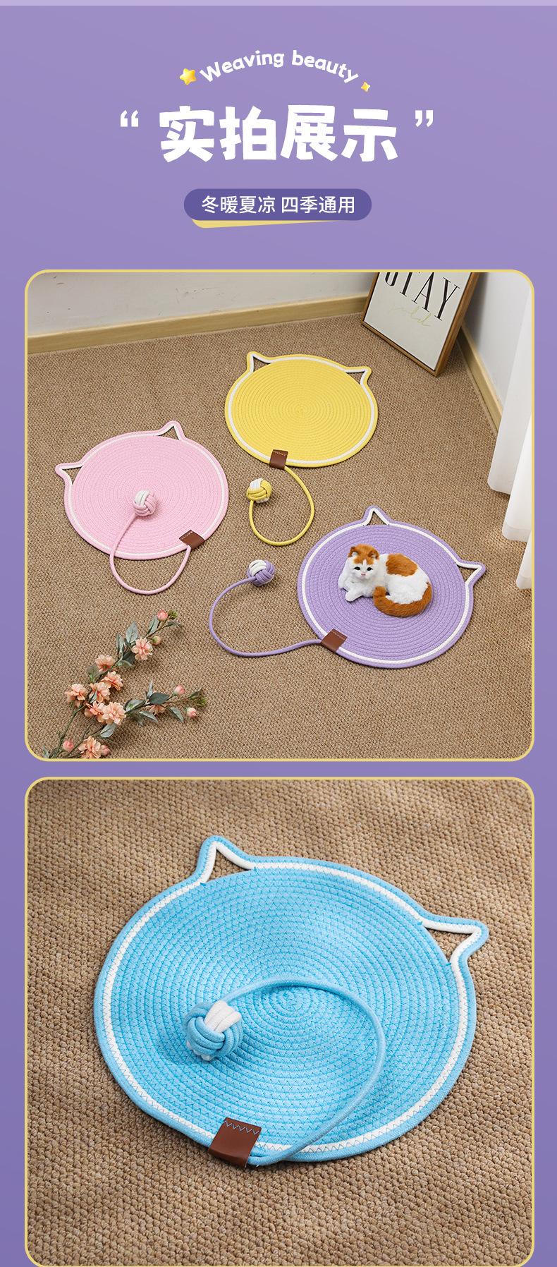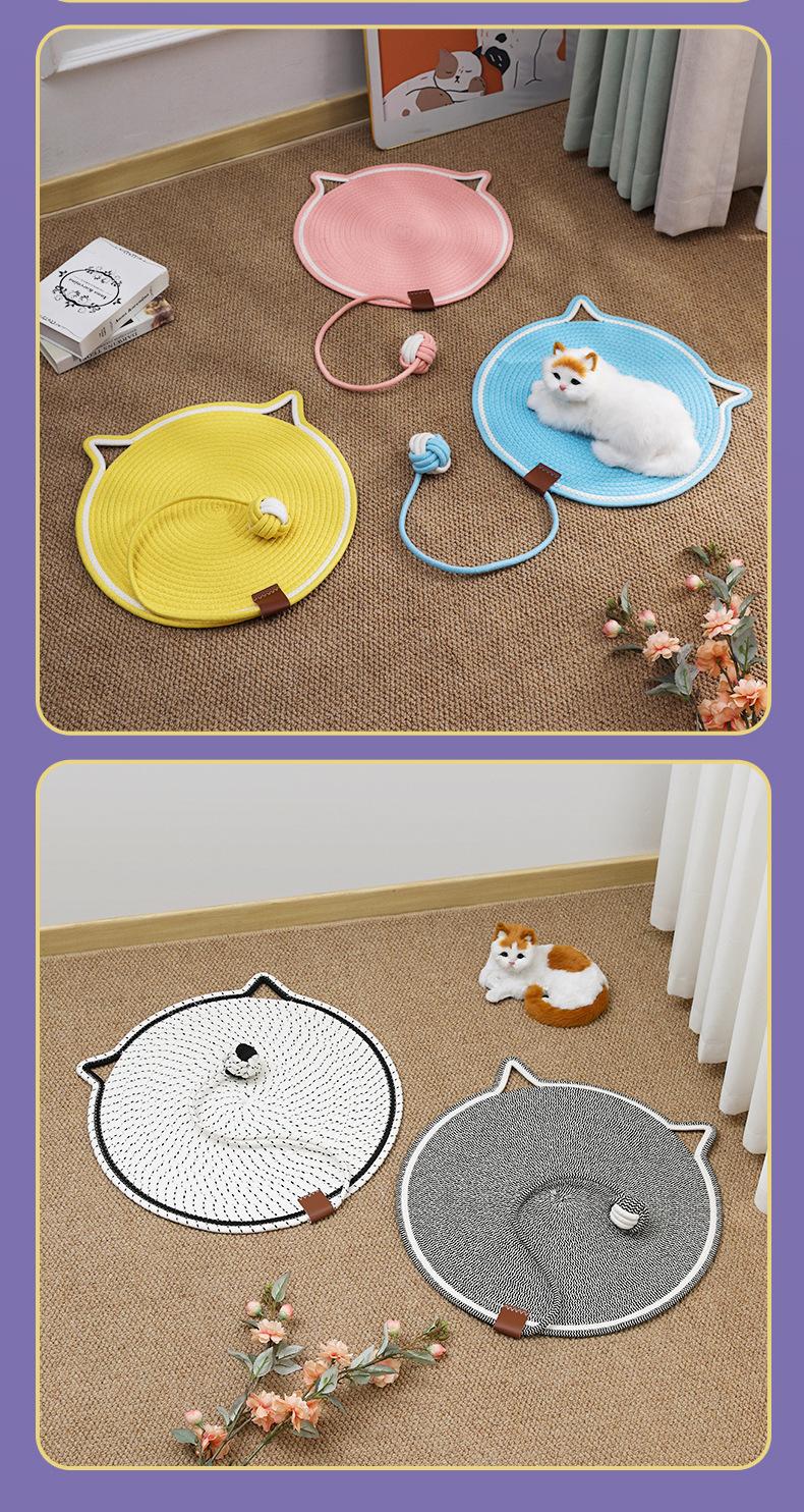 Tapete arranhador para gatos mais vendido no exterior corda de algodão bola de brinquedo gato dormindo placa arranhadora redonda almofada de descanso para gatos cama para animais de estimação tapete para animais de estimação