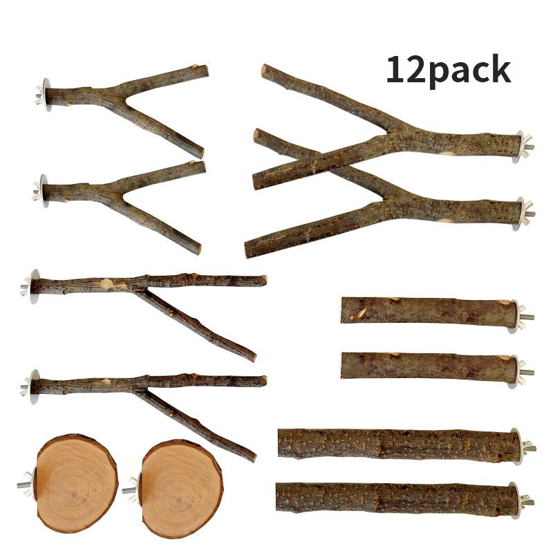 Brinquedo para Papagaio Galho de Madeira Natural Suporte Poleiro Plataforma para Pássaro Poleiro para Papagaio Bastão para Afiar as Unhas Madeira de Descanso Conjunto Combinado