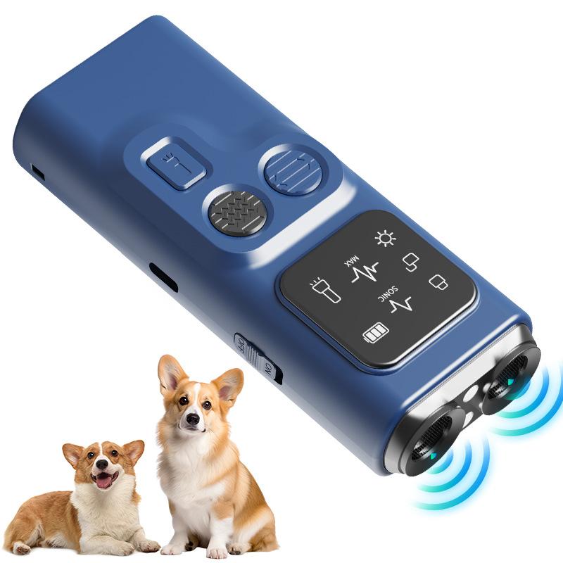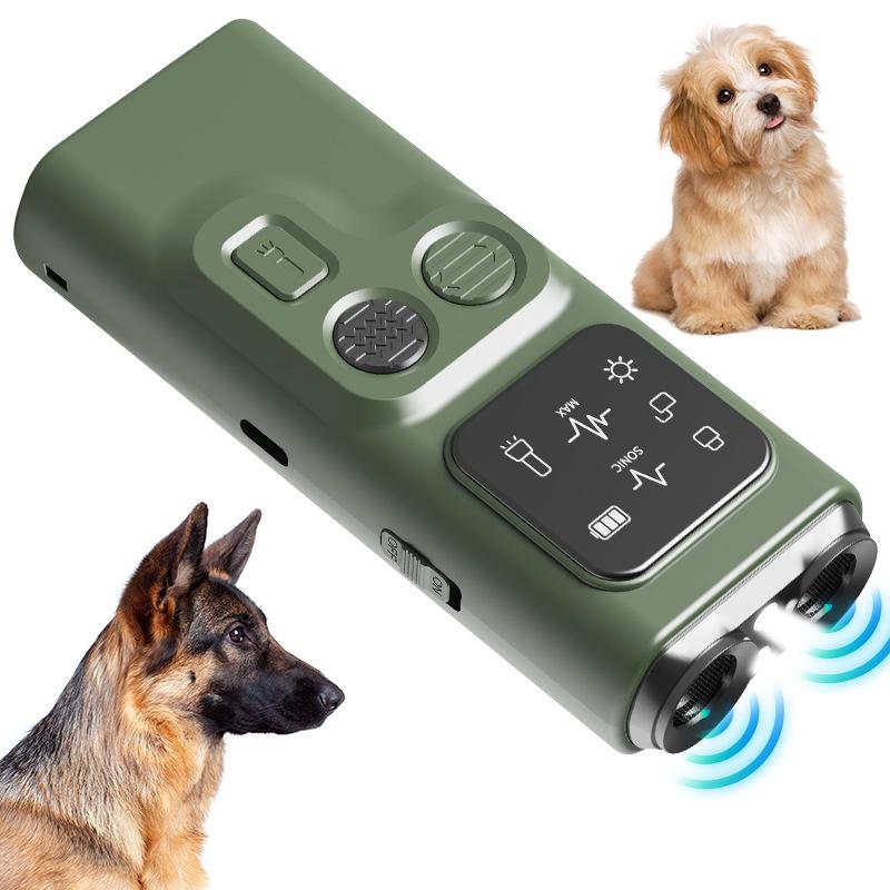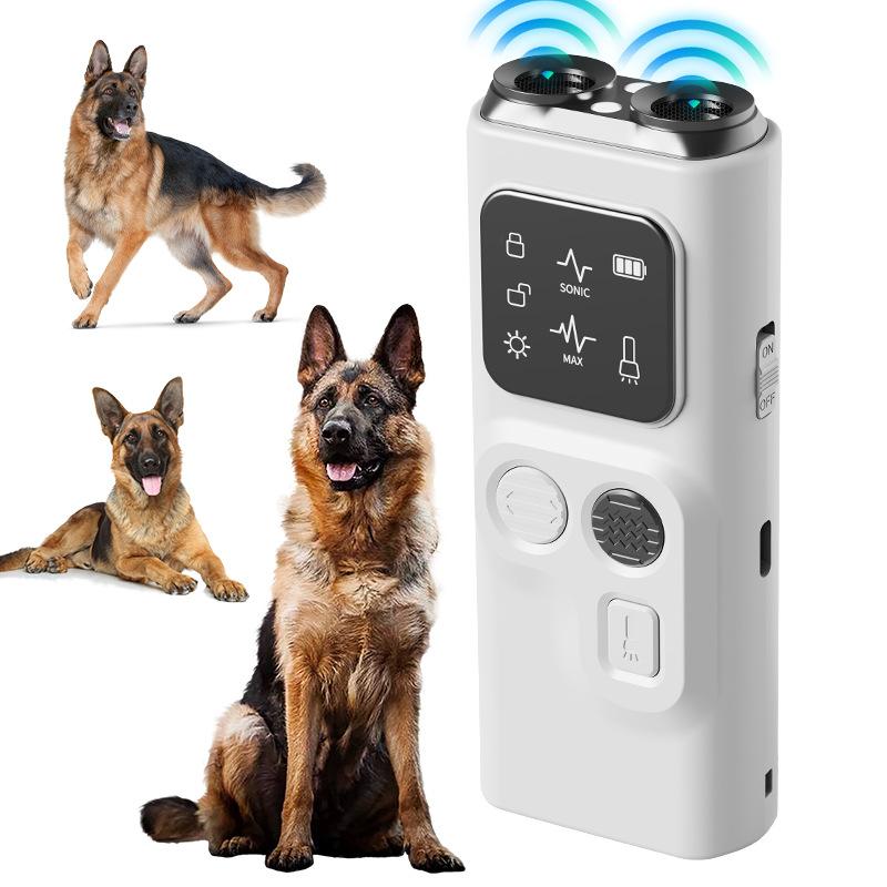 Este produto usa som ultrassônico para afastar animais de estimação, não causando danos físicos. É um dispositivo de treinamento para cães para latidos ou mordidas diárias de animais de estimação. Tem uma aparência generosa, operação simples e é fácil de transportar. Pode produzir um forte estímulo para cães e gatos (inaudível para o ouvido humano). Isso causa desconforto e interferência insuportável para os animais, e esse som agudo torna-se mais intenso à medida que o animal se aproxima, fazendo o cão se sentir desconfortável e fazendo-o reagir com grande medo e fugir apressadamente.
