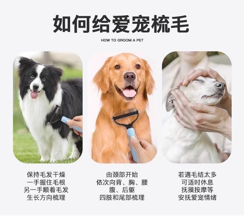 Blue double-sided pet knotting comb, Pink double-sided pet knotting comb
