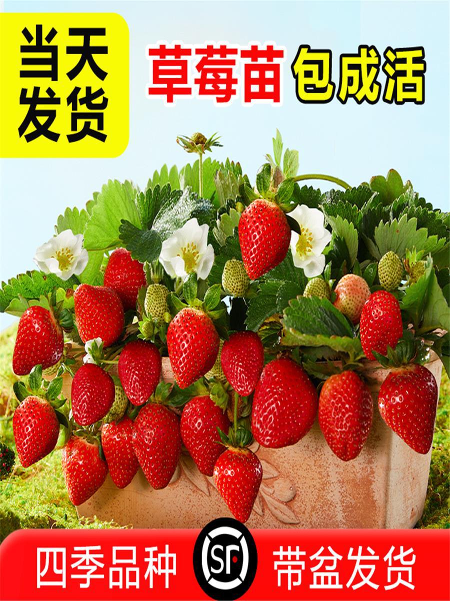 Mudas de Morango Creme Envasadas Sementes, Morangueiro de Quatro Estações de Face Vermelha Frutífero Plantio em Varanda Mudas Novas com Flores, Frutos e Solo