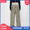2024 Novo Amazon Transfronteiriço Americano Retrô Street Calças de Perna Reta Lavadas Velhas Jeans Estampados de Leopardo Tendência