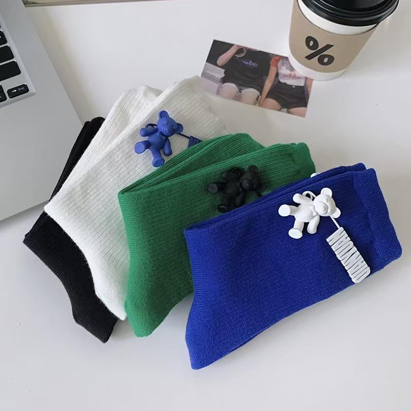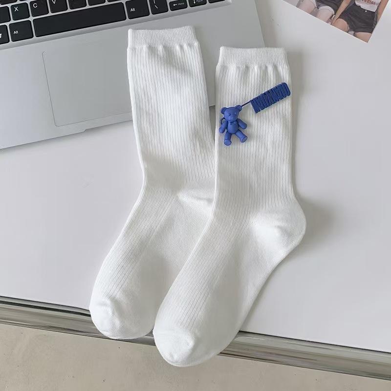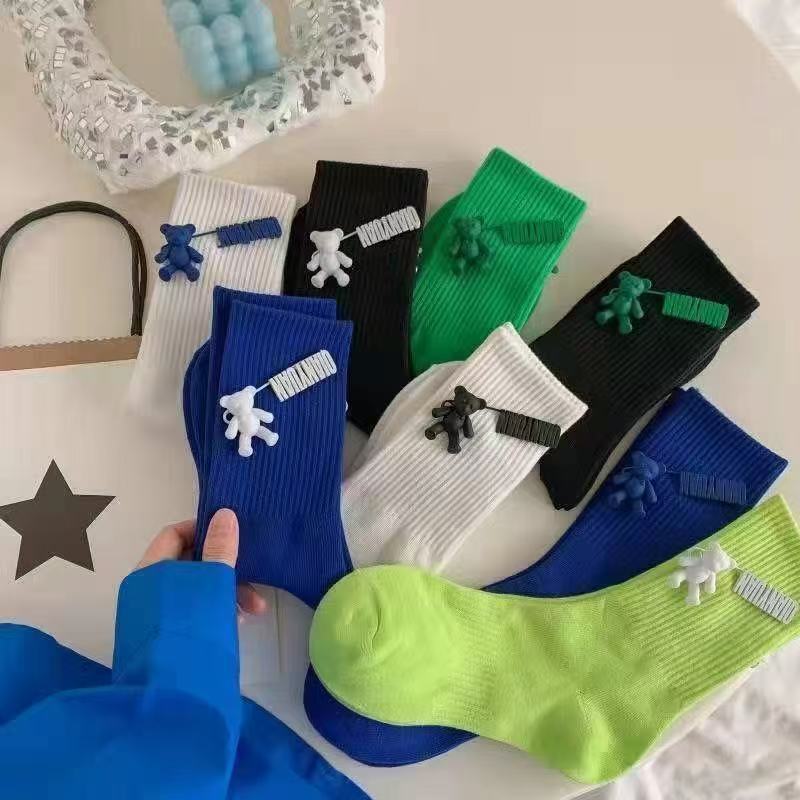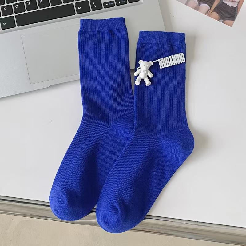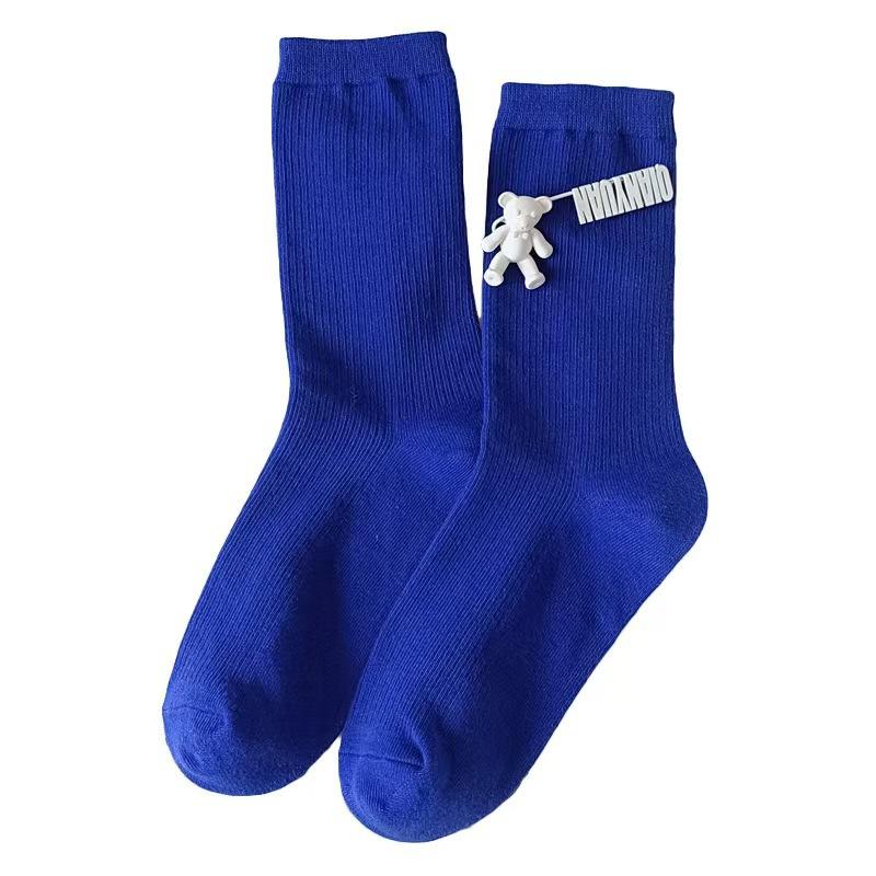 Compre Outono Meias Novas Estilo Coreano Urso de Broche Tridimensional Meias Femininas de Meia Panturrilha Azul Klein Boca Alta Meias de Meia Panturrilha no atacado no Joom.pro