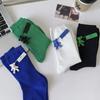 Outono Meias Novas Estilo Coreano Urso de Broche Tridimensional Meias Femininas de Meia Panturrilha Azul Klein Boca Alta Meias de Meia Panturrilha