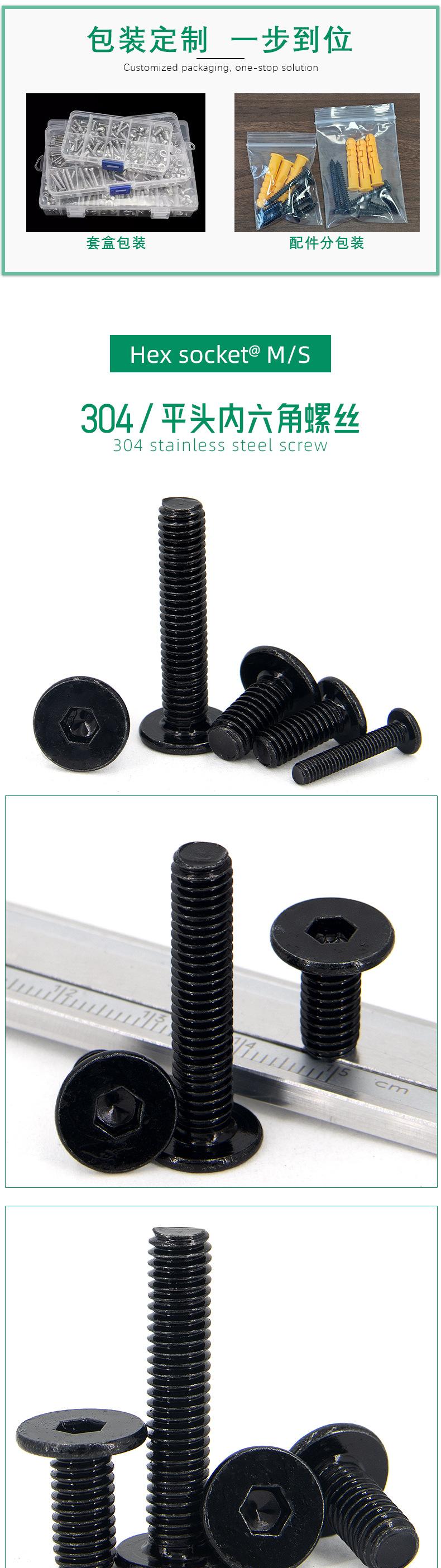 Parafusos de Máquina Aço Inoxidável 304 Zinco Preto Cabeça Fina Chata Soquete Sextavado Parafusos Soquete Sextavado cm Rosca Grossa Padrão M1.4~M4