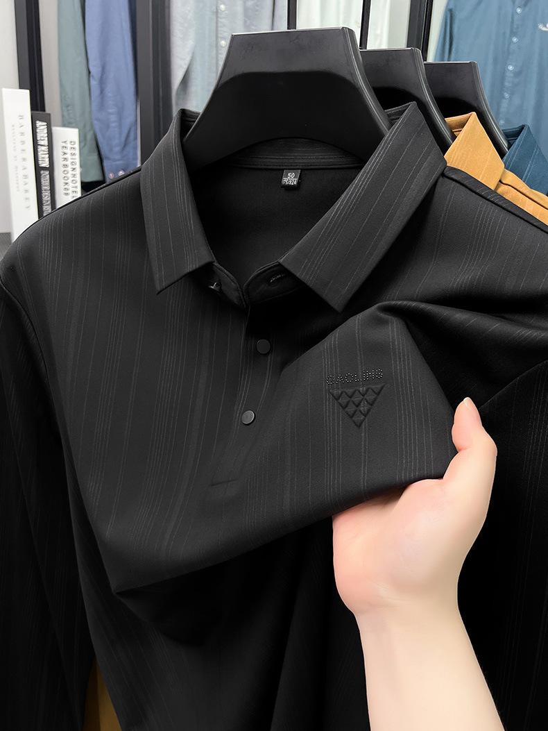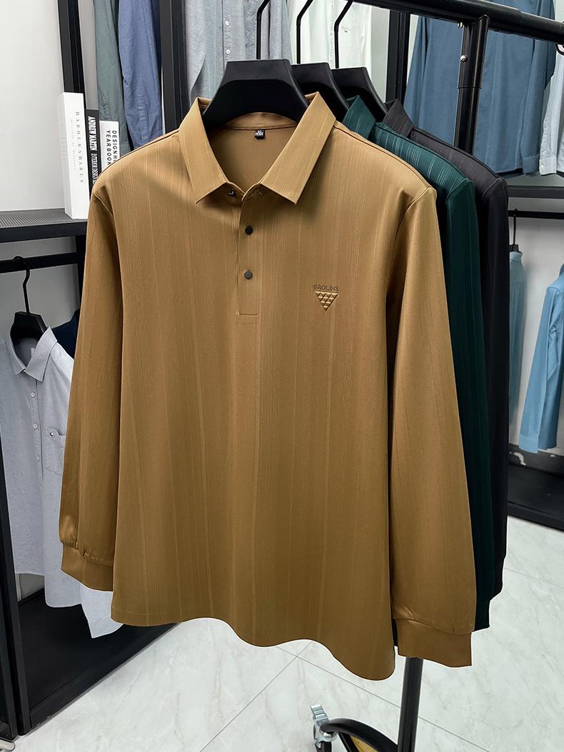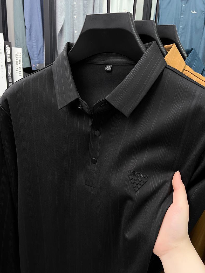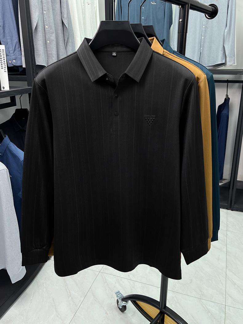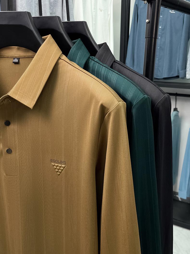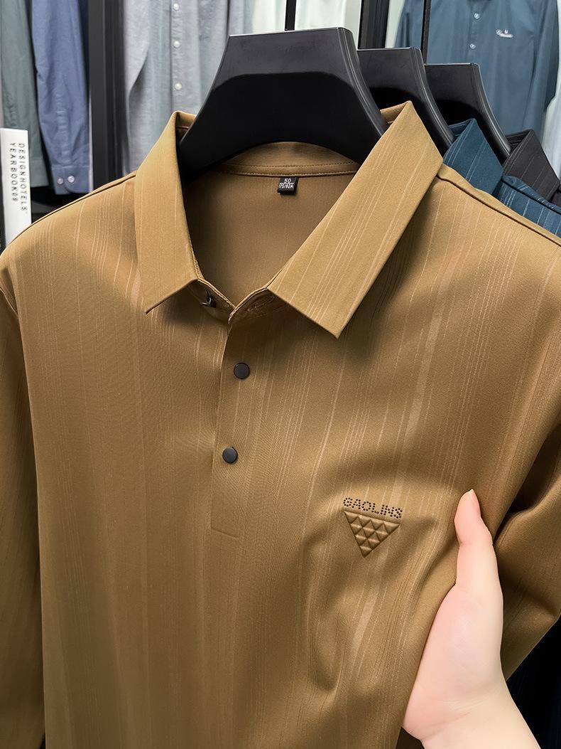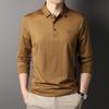 Camisa Polo Masculina Manga Longa Business Casual 2025 Outono Nova Simples Versátil Gola Pontuda Respirável Camiseta Roupa de Pai