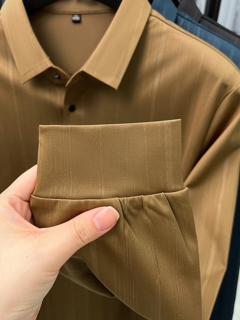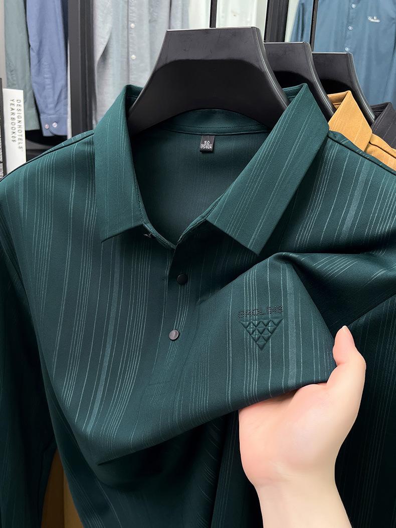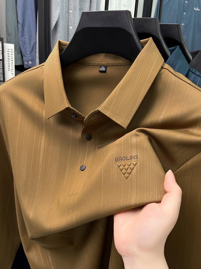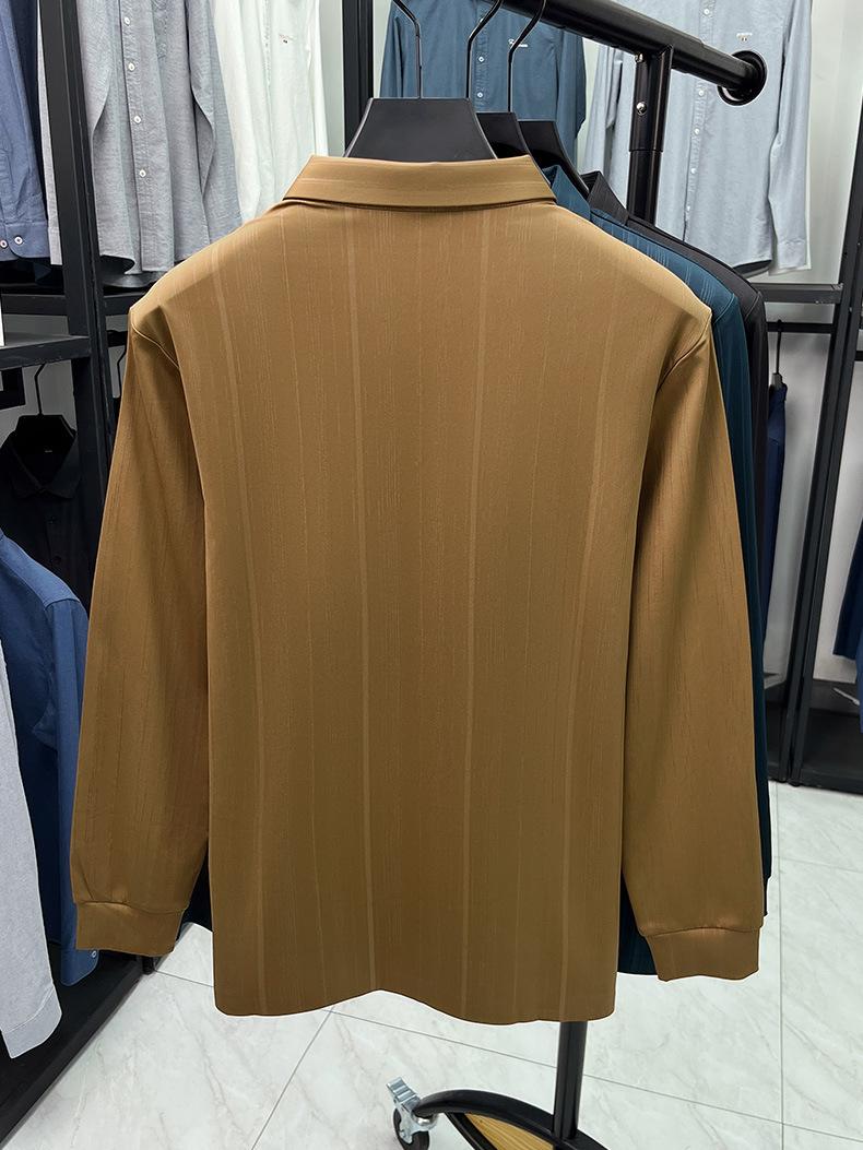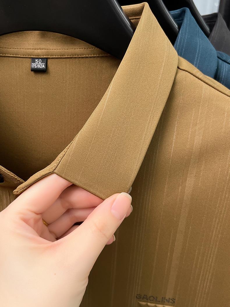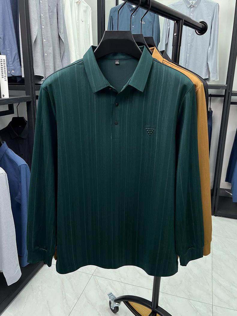 Camisa Polo Masculina Manga Longa Business Casual 2025 Outono Nova Simples Versátil Gola Pontuda Respirável Camiseta Roupa de Pai