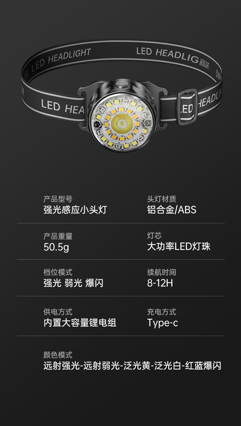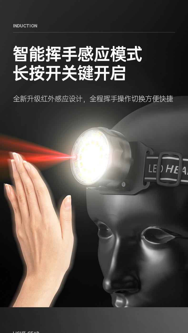 Lanterna de Cabeça de Indução Luz Forte Super Brilhante Lâmpada de Campo Longa Duração Recarregável para Exterior Lâmpada de Pesca Montada na Cabeça Lanterna de Mineiro