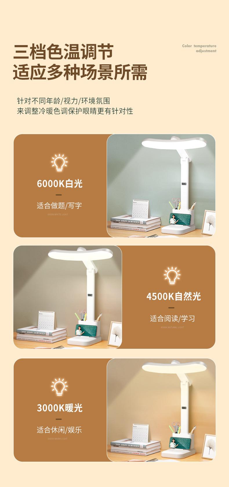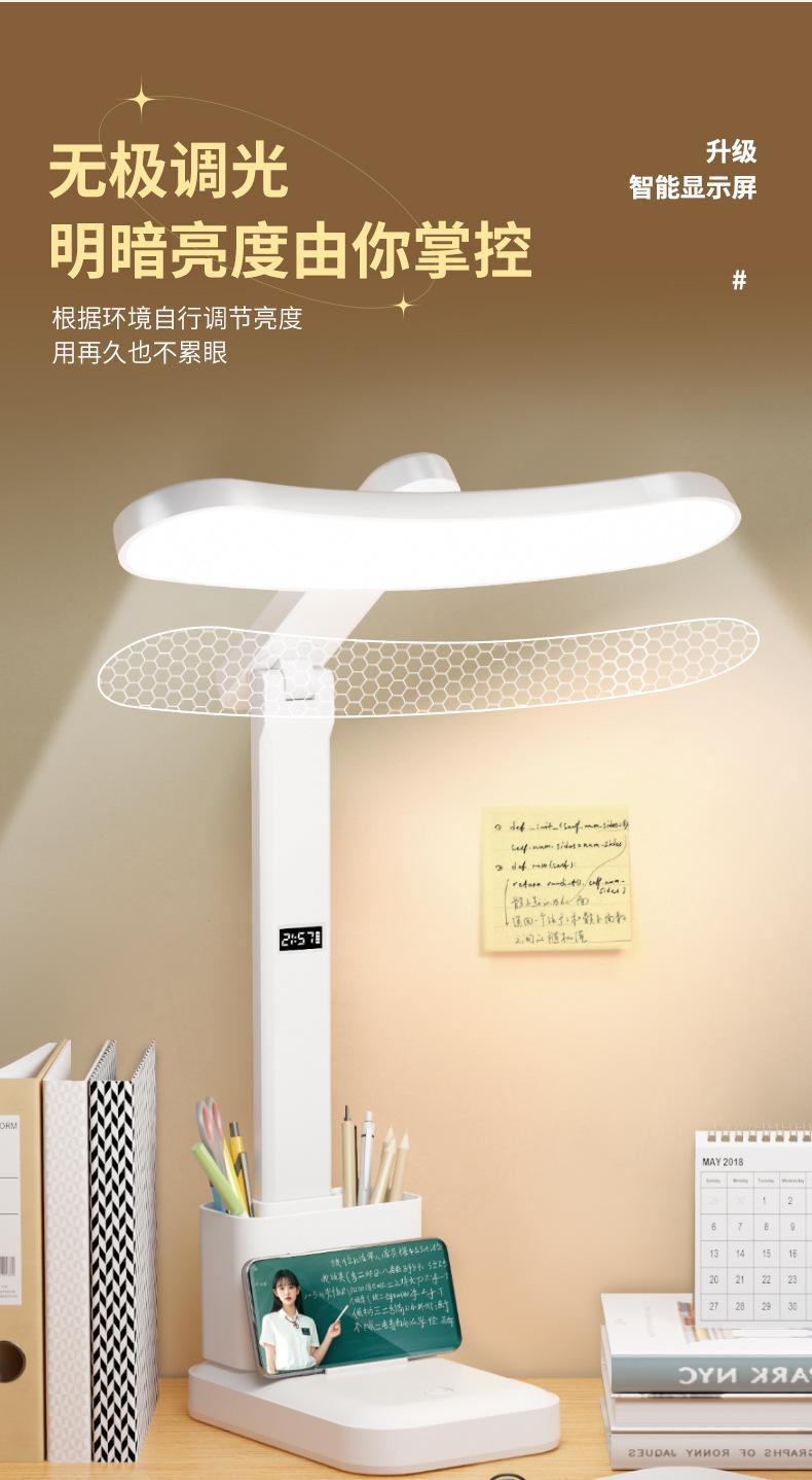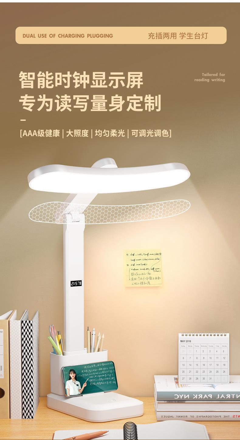 [rechargeable model] clock + battery display + three color temperatures + stepless dimming + honeycomb lens + pen holder