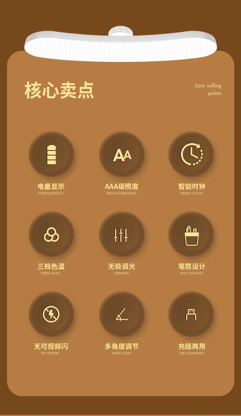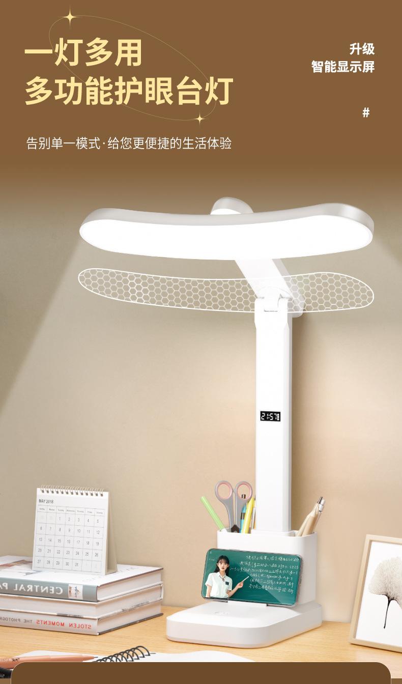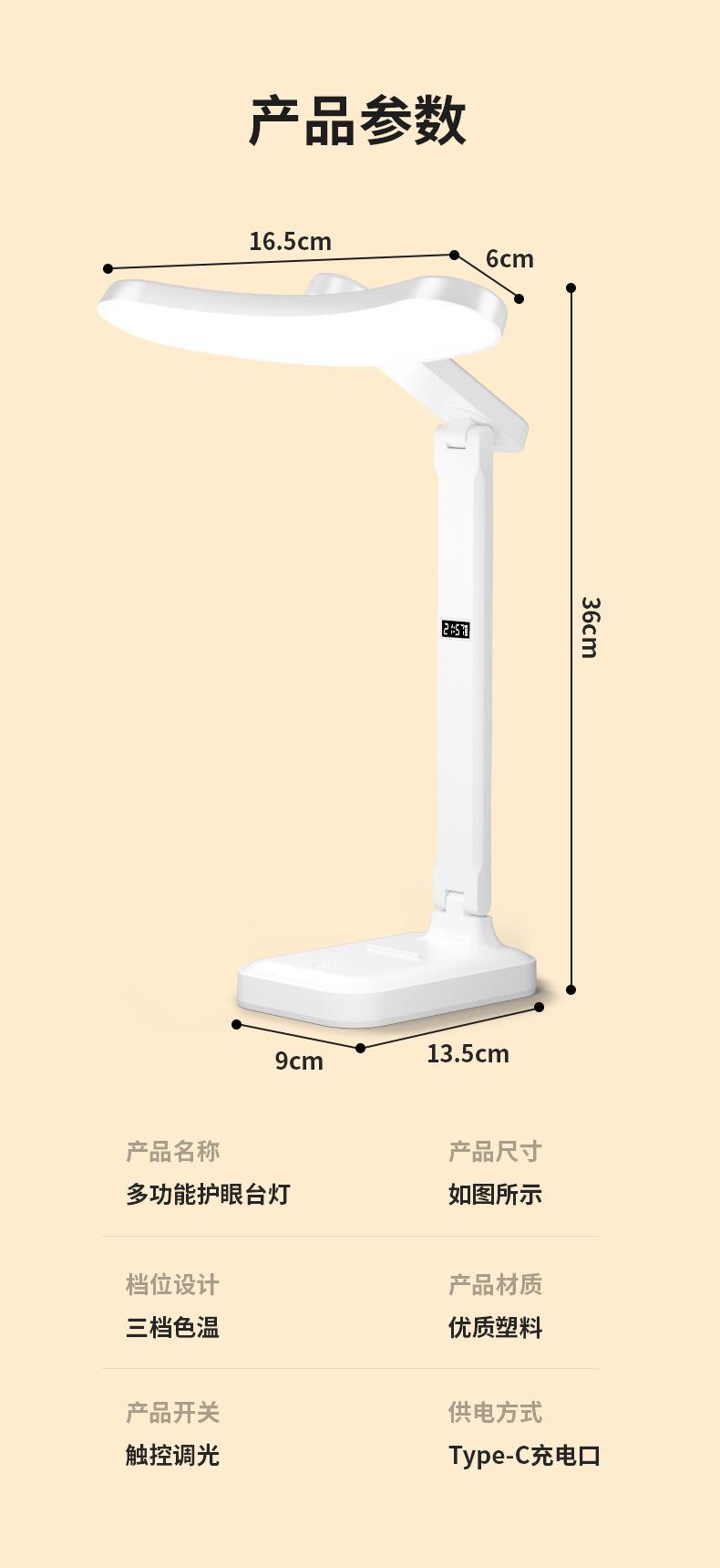 [rechargeable model] clock + battery display + three color temperatures + stepless dimming + honeycomb lens + pen holder