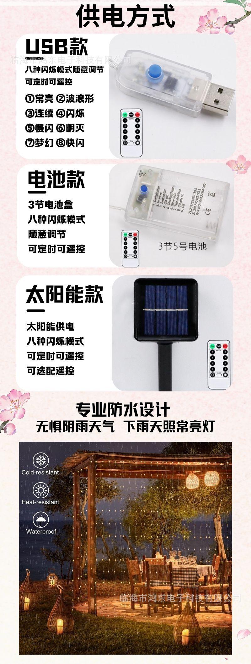 Cortina de Luz de Fio de Cobre 3X3 LED Personalizada Transfronteiriça com Gancho USB Oito Funções com Controle Remoto Decoração de Quarto Luz de Atmosfera