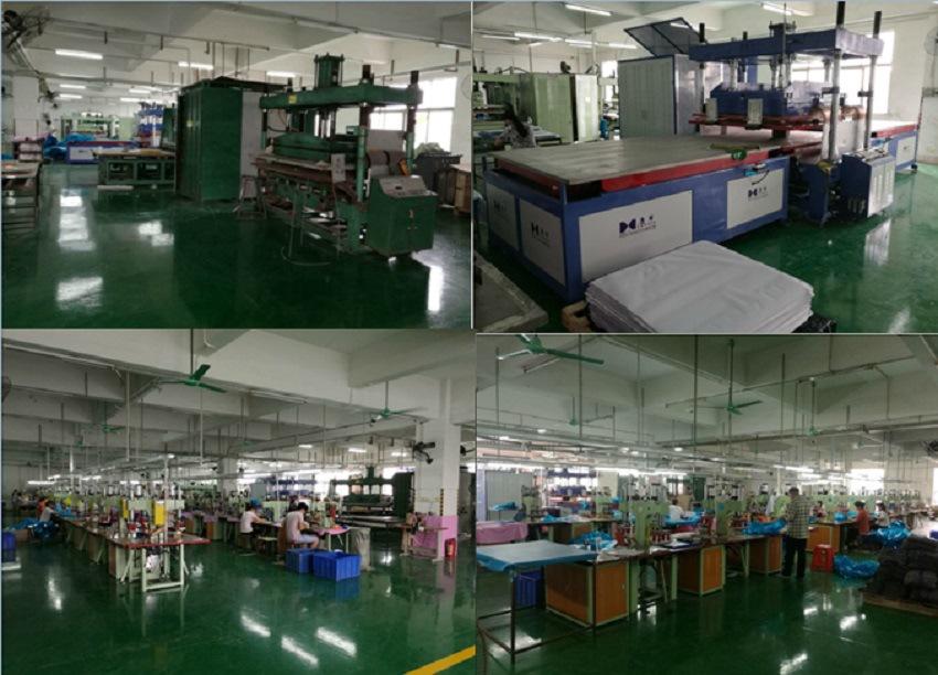 Temos nossa própria equipe de design e desenvolvimento de produtos, um grande número de operadores qualificados e equipamentos de produção avançados e completos. Possuímos mais de 40 máquinas de solda plástica de alta frequência que variam de 5KW a 150KW, mais de 20 máquinas de costura e 2 máquinas de alta temperatura. Em 2011, a empresa passou pela certificação do sistema de gestão de qualidade ISO9001-2008. Todas as matérias-primas estão em conformidade com os padrões EU EN/71, REACH, US ASTM, FDA, bem como NON –PHTHALATE(6P)/7P/16P,20P,34P e outros padrões.