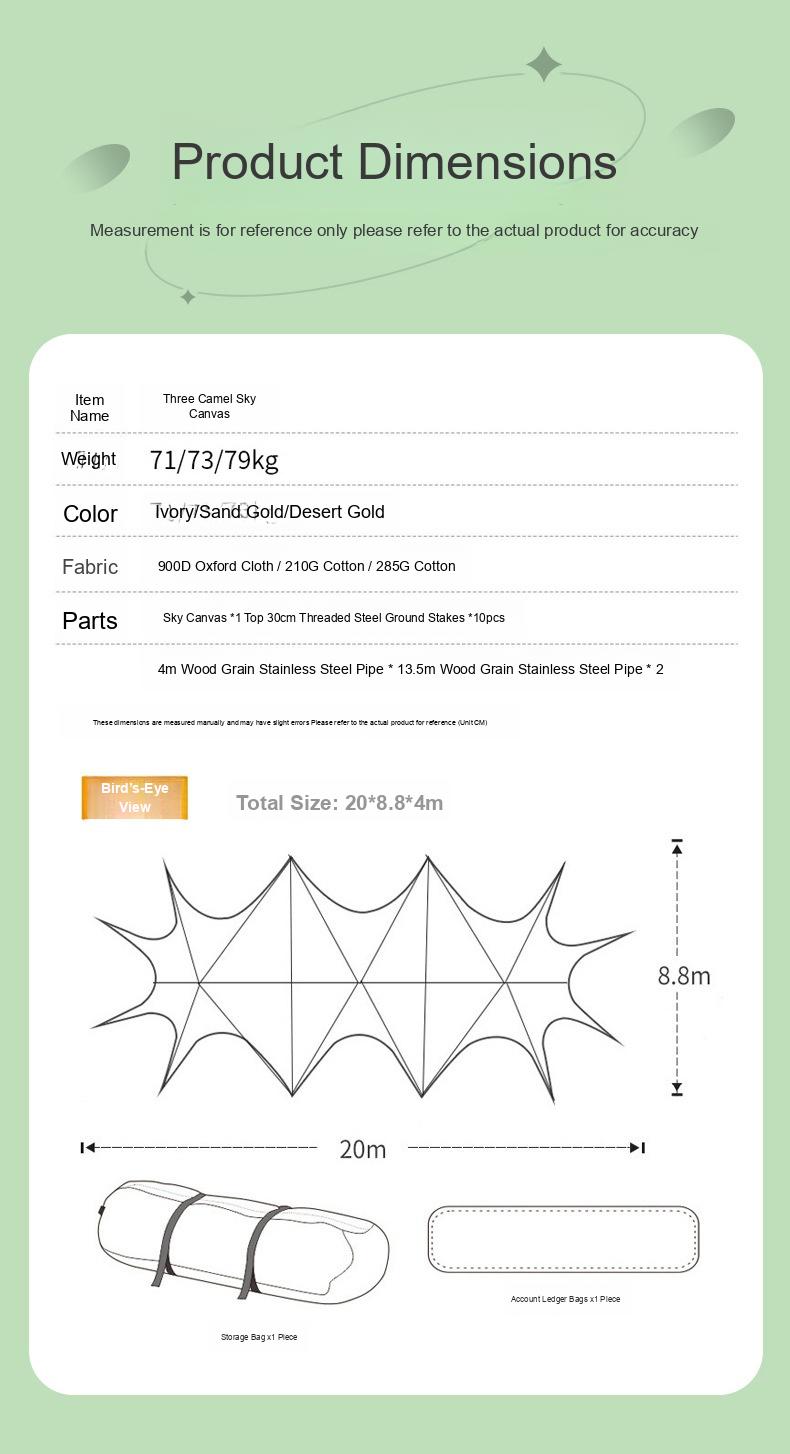 cor: Pico pequeno no topo da nuvem, pico grande no topo da nuvem, céu de pico duplo, céu de pico triplo, 10 estacas de solo (excluindo céu) material: tecido de poliéster Tamanho: Tecido Oxford bege/cáqui Índice de impermeabilidade: pu3000+ forma: quadrado PERSONALIZÁVEL: Aceita personalização