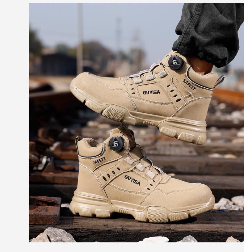Novos Sapatos de Proteção de Trabalho de Inverno Transfronteiriços Masculinos Anti-esmagamento Anti-perfuração Sapatos de Proteção de Segurança Estilo Resistente ao Desgaste Confortáveis Mais Veludo Sapatos de Trabalho