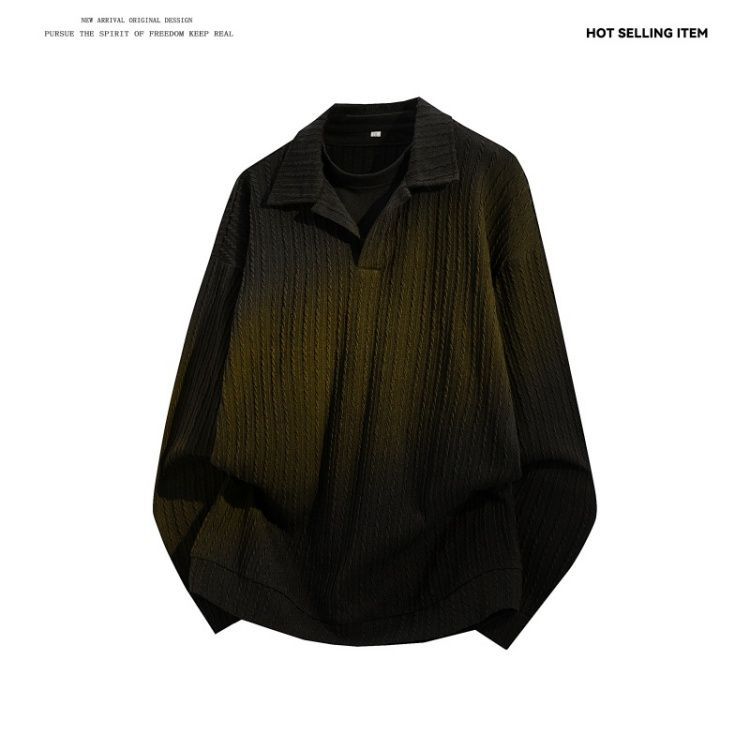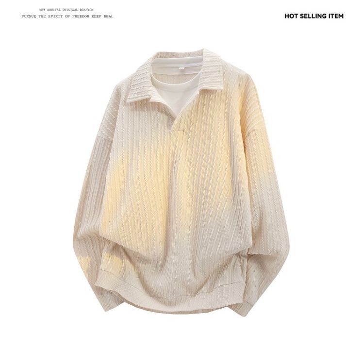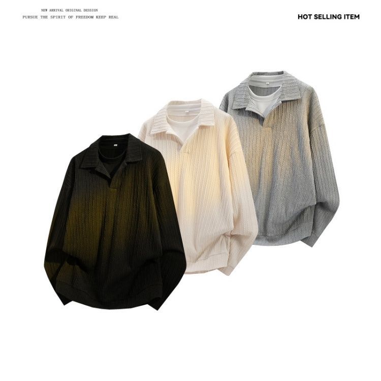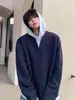 Moletom Masculino Novo Outono 2025 Falso Duas Peças Manga Longa Solto Plus Size Adolescente Tendência Jaqueta Top com Gola Dobrável