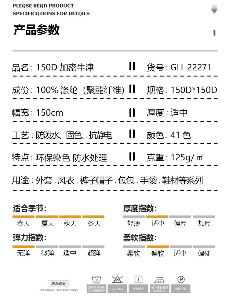 Tecido Corta-vento de Poliéster Tecido 150D, Jaqueta Casual Oxford Criptografada, Calças, Chapéu, Bolsa Repelente à Água