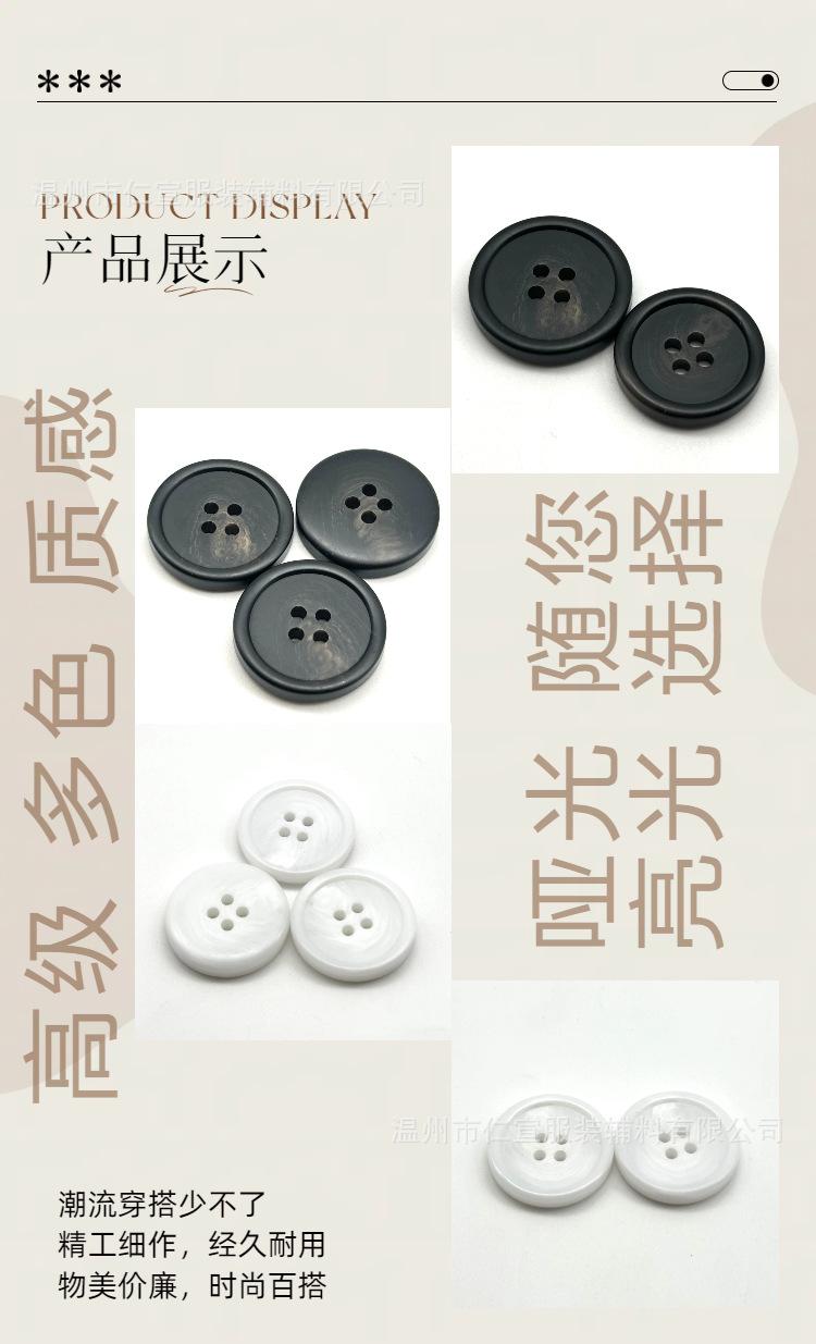 Botões Quatro Olhos com Padrão de Resina Fosco Brilhante Fabricante Atacado Alta Qualidade Sazonal Tendência Botões de Roupa de Terno