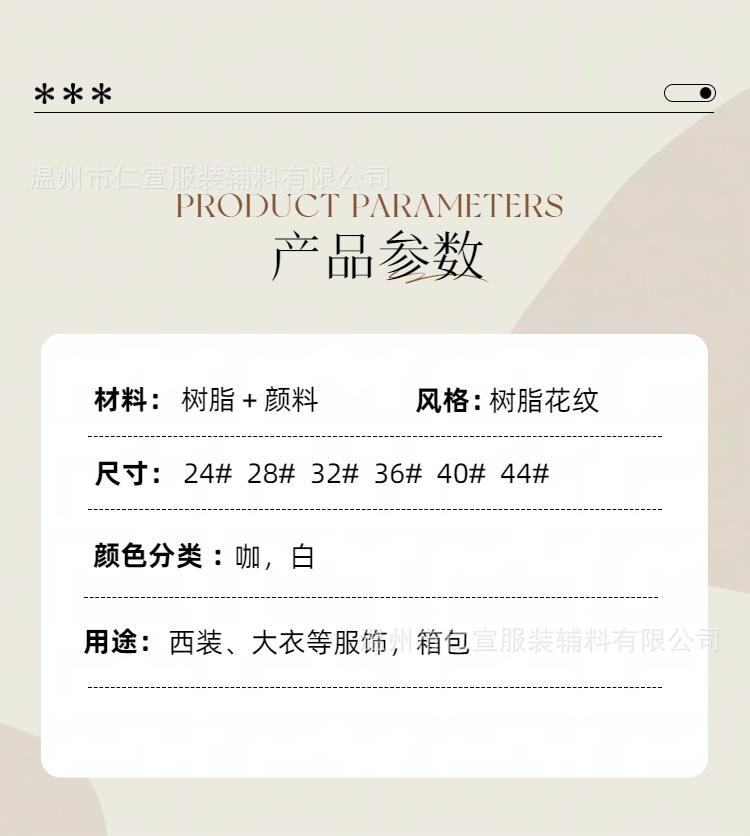 White*15mm (24 # )*round*resin pattern, Coffee*15mm (24 # )*round*resin pattern, White*18mm (28 # )*round*resi...