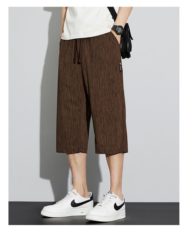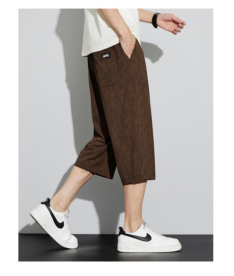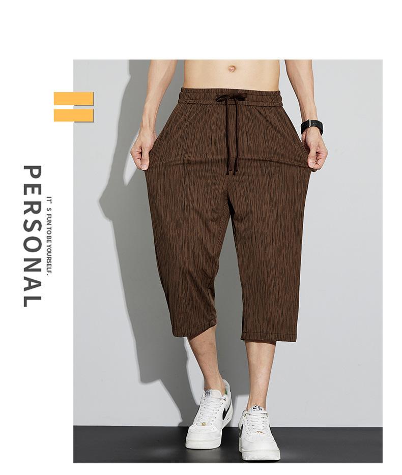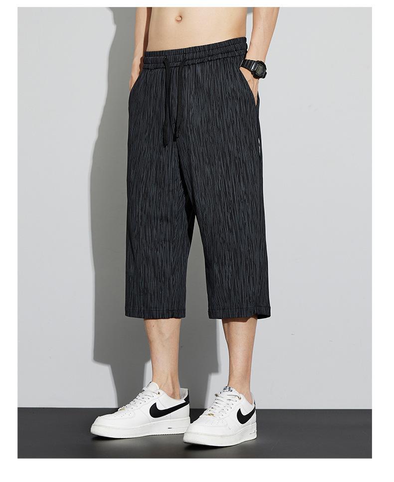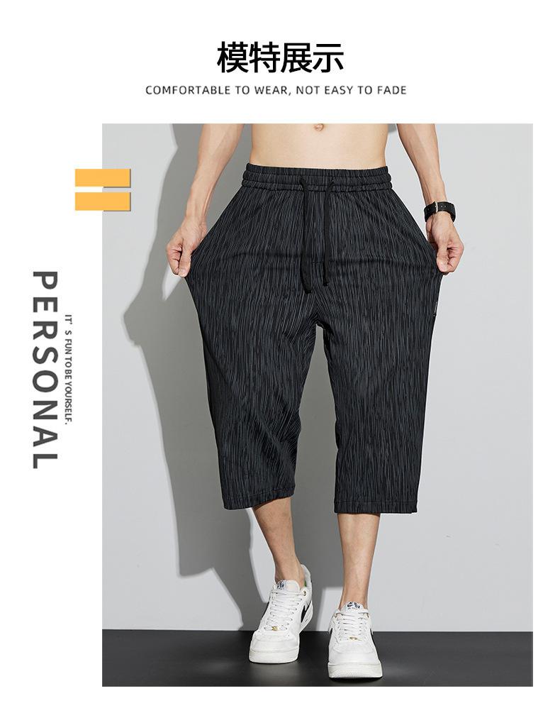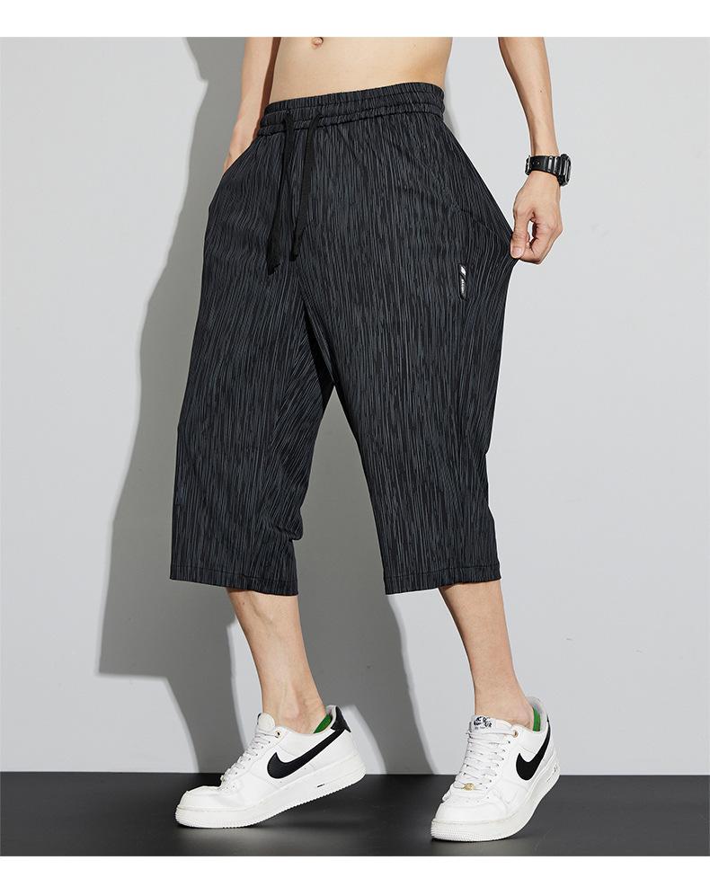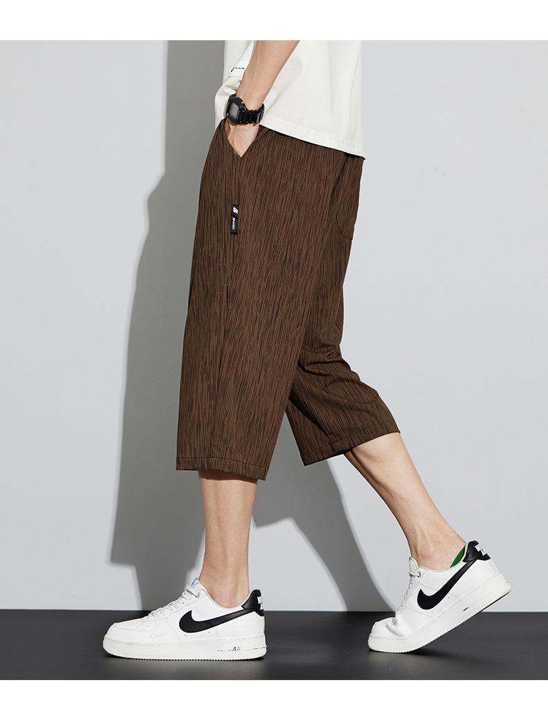 Calças Masculinas de Seda de Gelo Verão Finas Respiráveis Alta Elasticidade Calças Capris Moda Mais Fácil de Combinar Listra Meteoro Calças Curtas Calções Masculinos