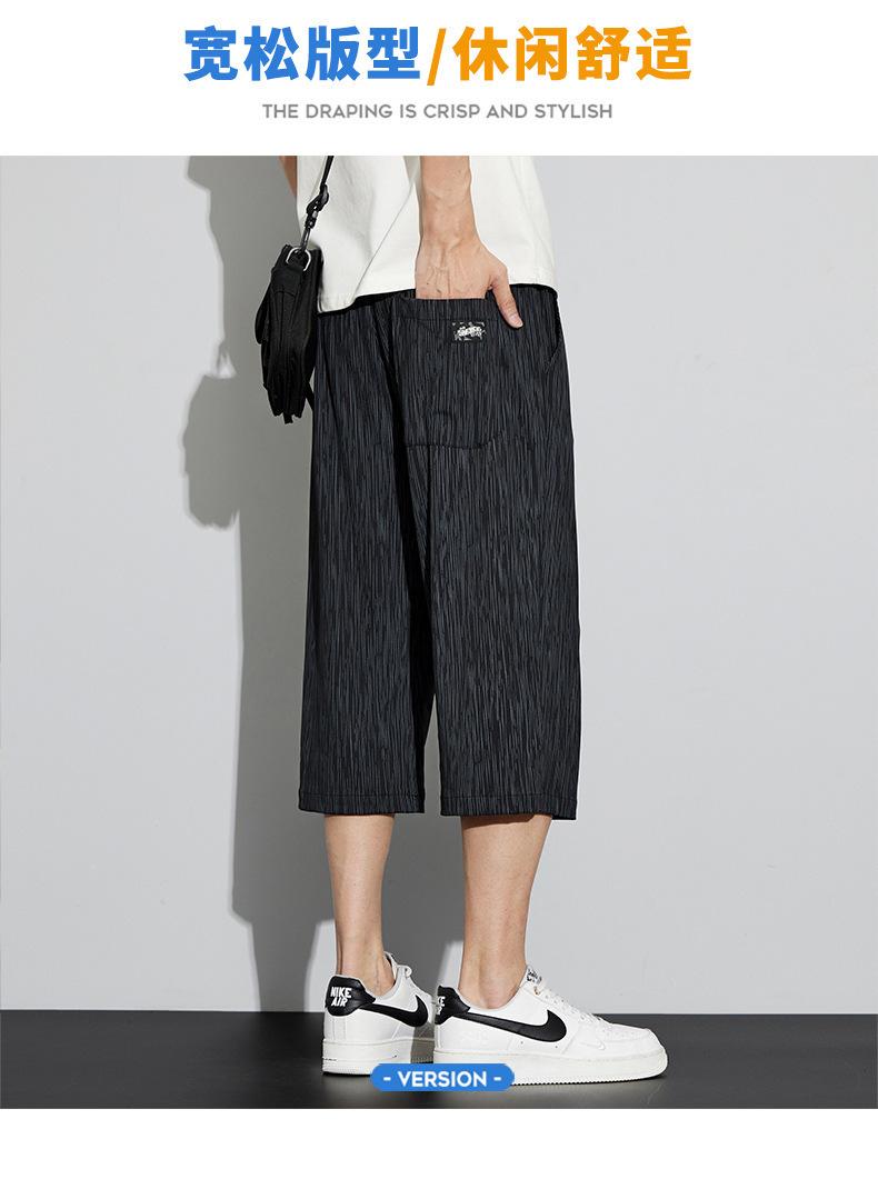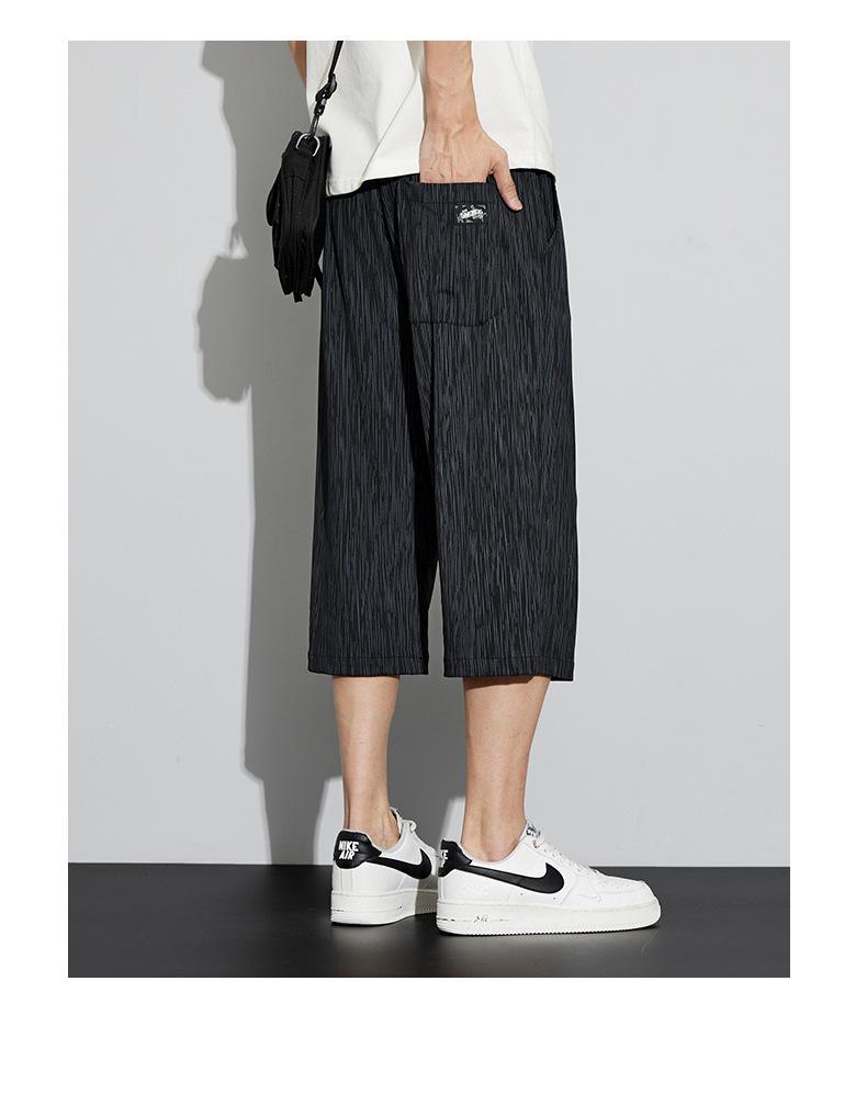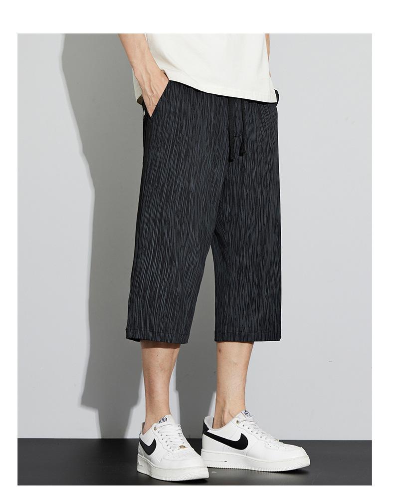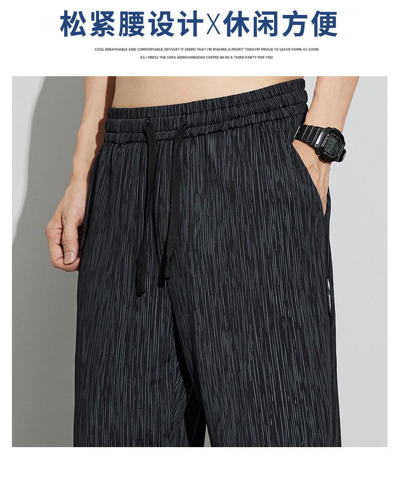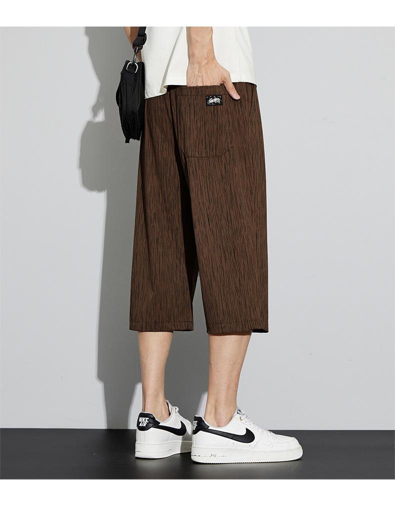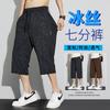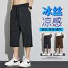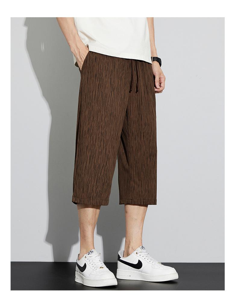 Calças Masculinas de Seda de Gelo Verão Finas Respiráveis Alta Elasticidade Calças Capris Moda Mais Fácil de Combinar Listra Meteoro Calças Curtas Calções Masculinos