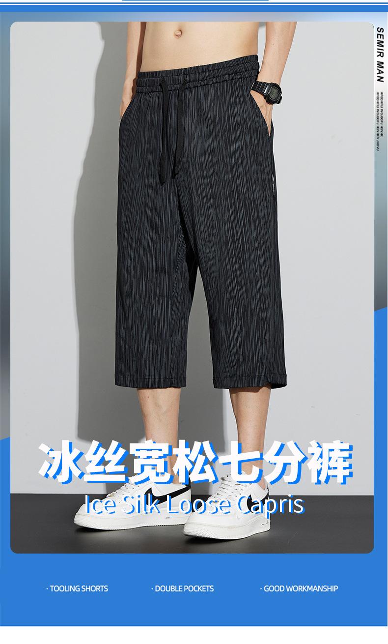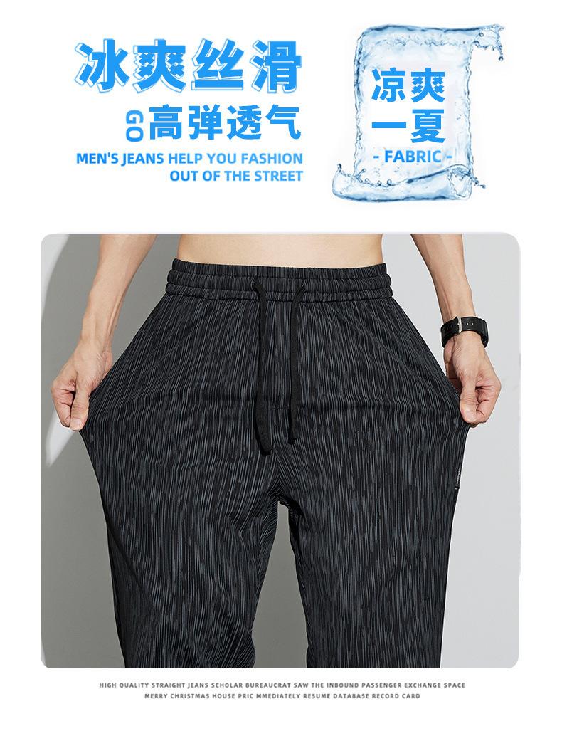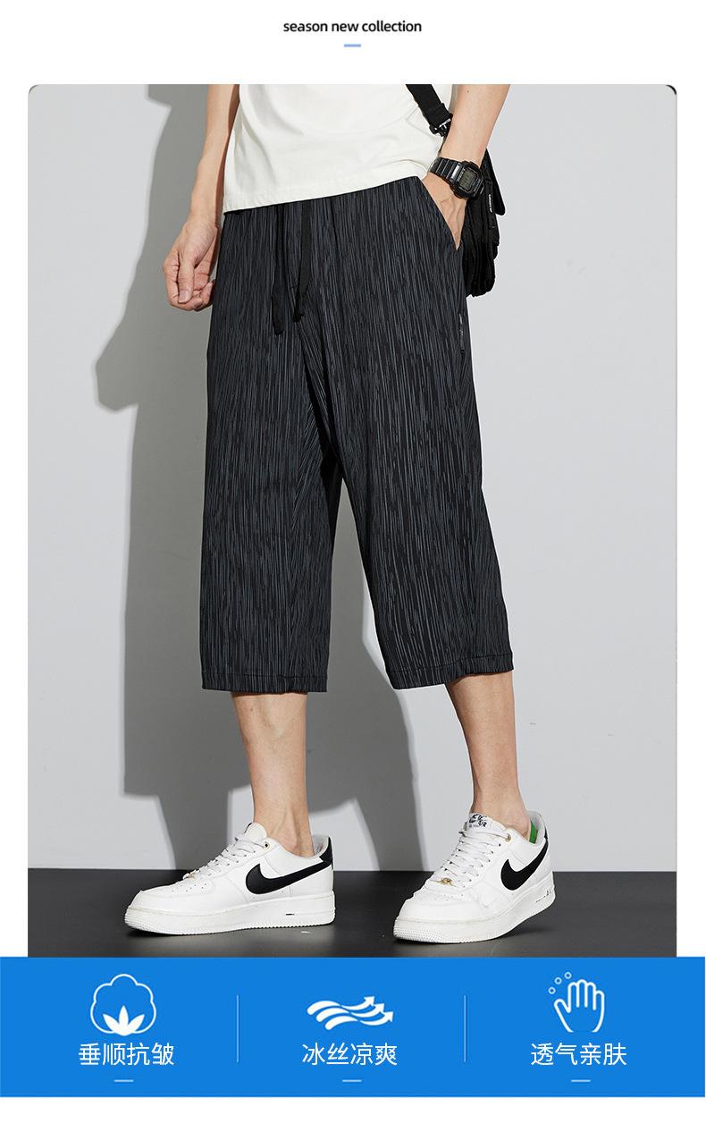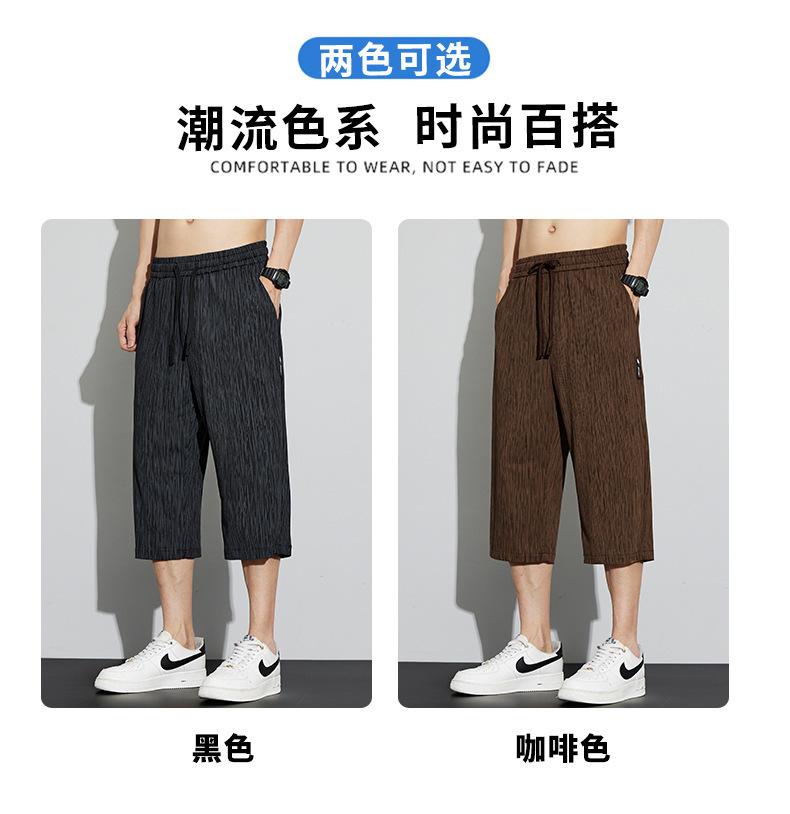 Compre Calças Masculinas de Seda de Gelo Verão Finas Respiráveis Alta Elasticidade Calças Capris Moda Mais Fácil de Combinar Listra Meteoro Calças Curtas Calções Masculinos no atacado no Joom.pro