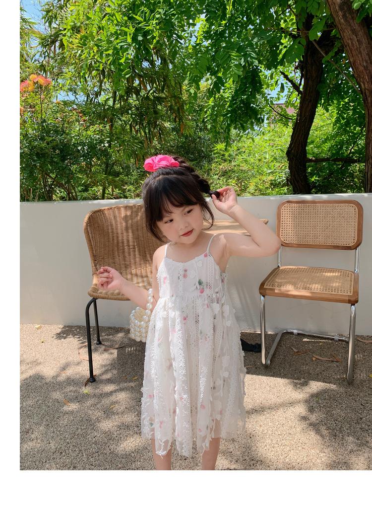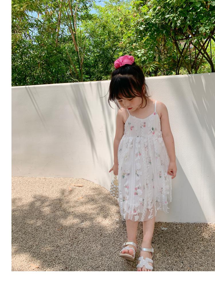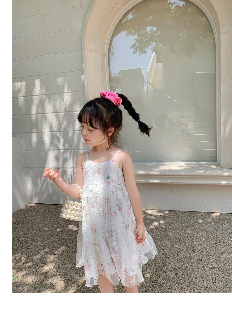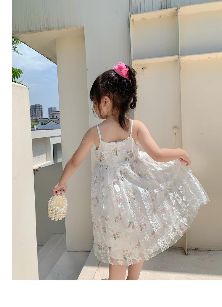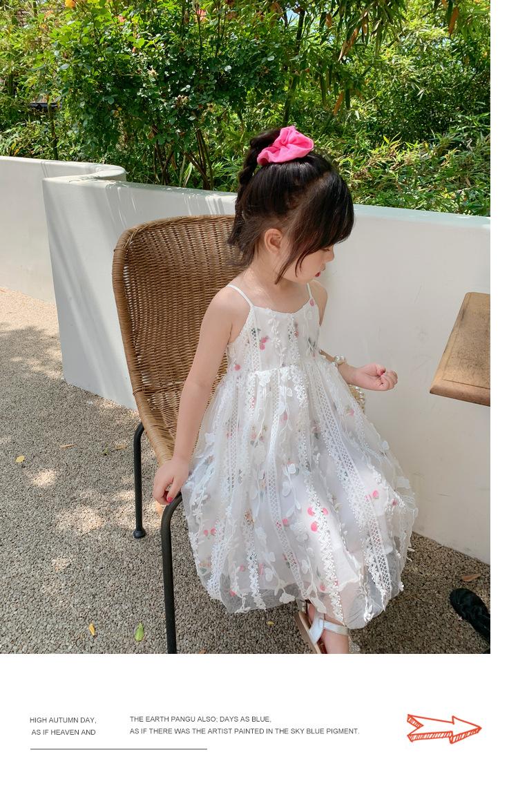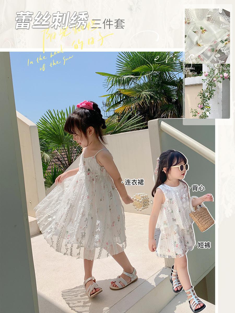Atacado de roupas infantis transfronteiriças terno de menina vestido verão novo infantil flor renda bordado Princesa saia de suspensório