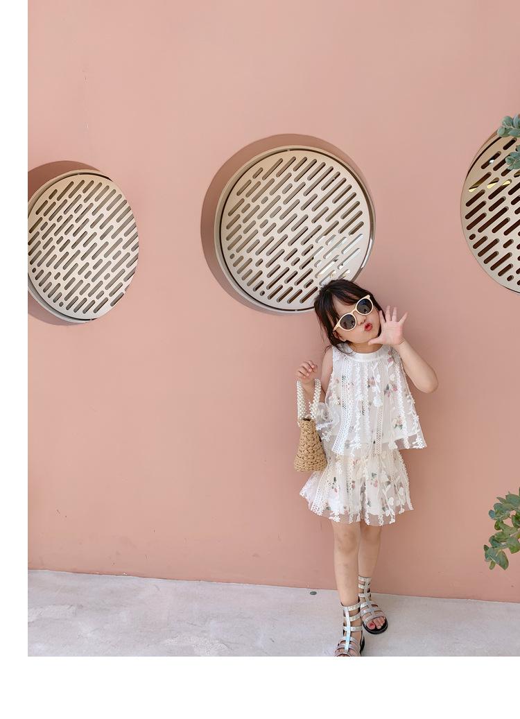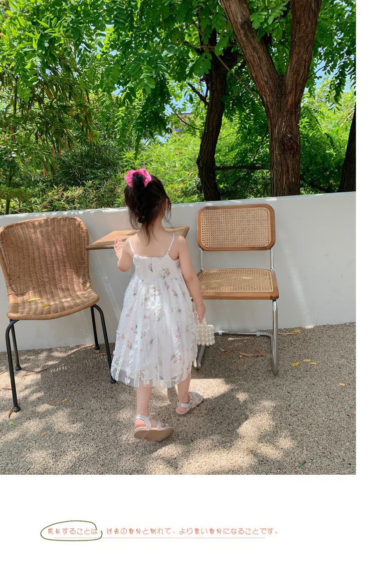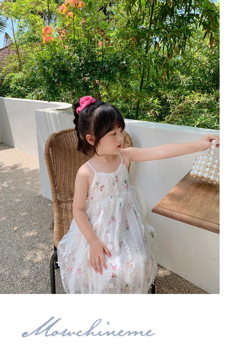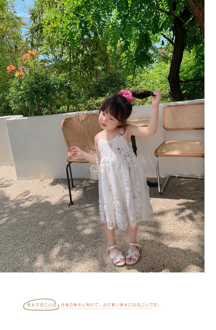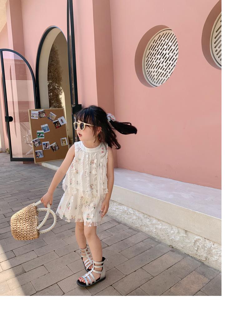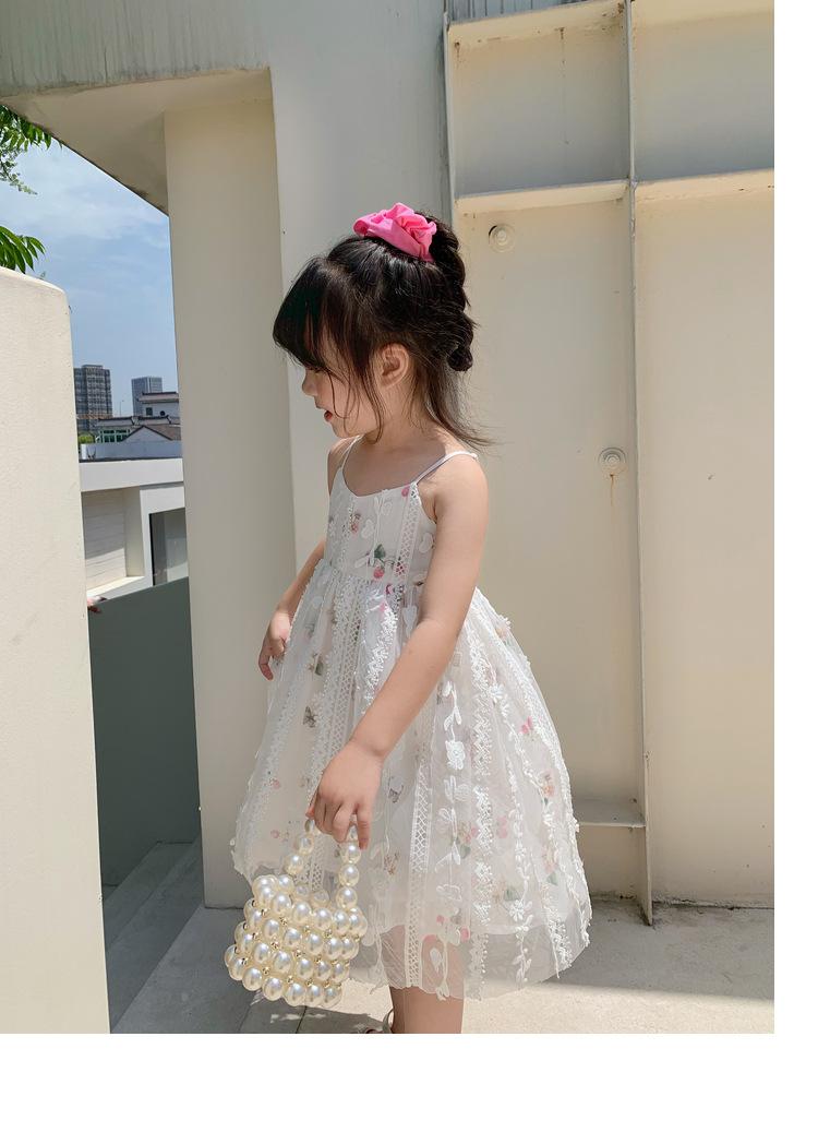 Atacado de roupas infantis transfronteiriças terno de menina vestido verão novo infantil flor renda bordado Princesa saia de suspensório