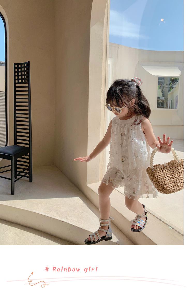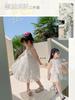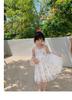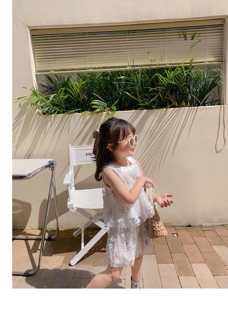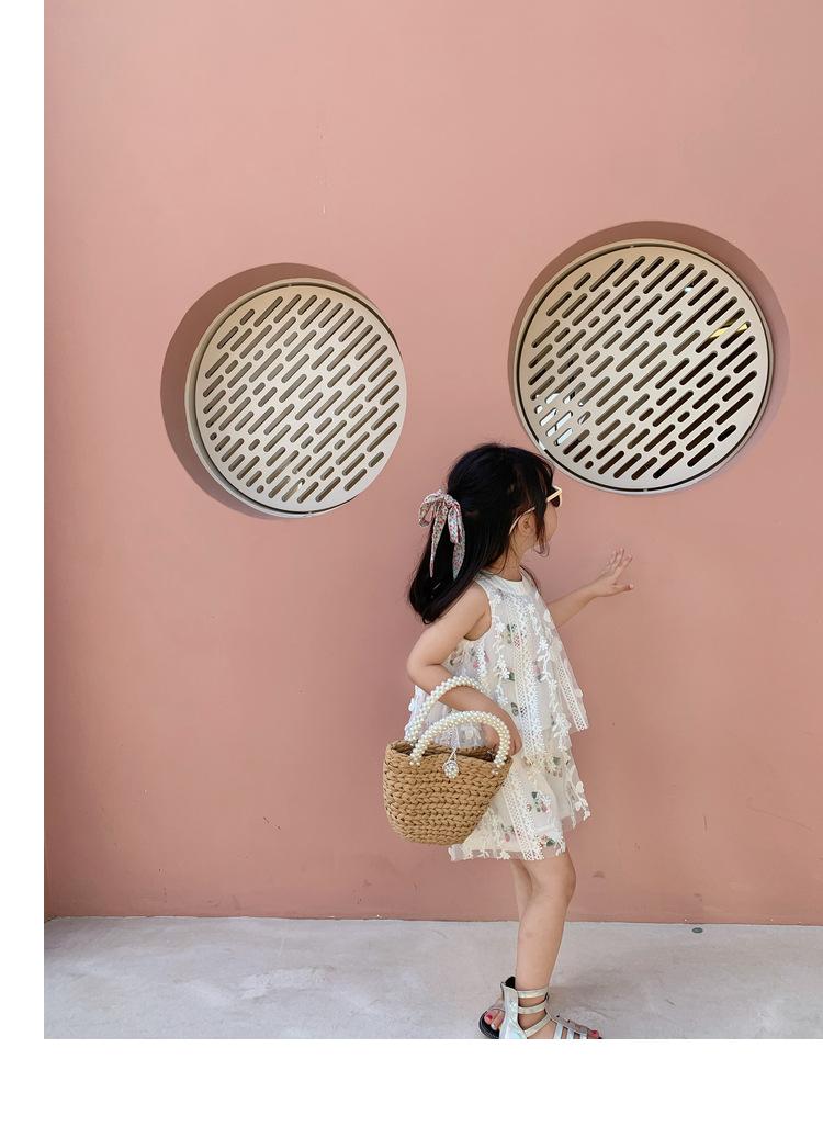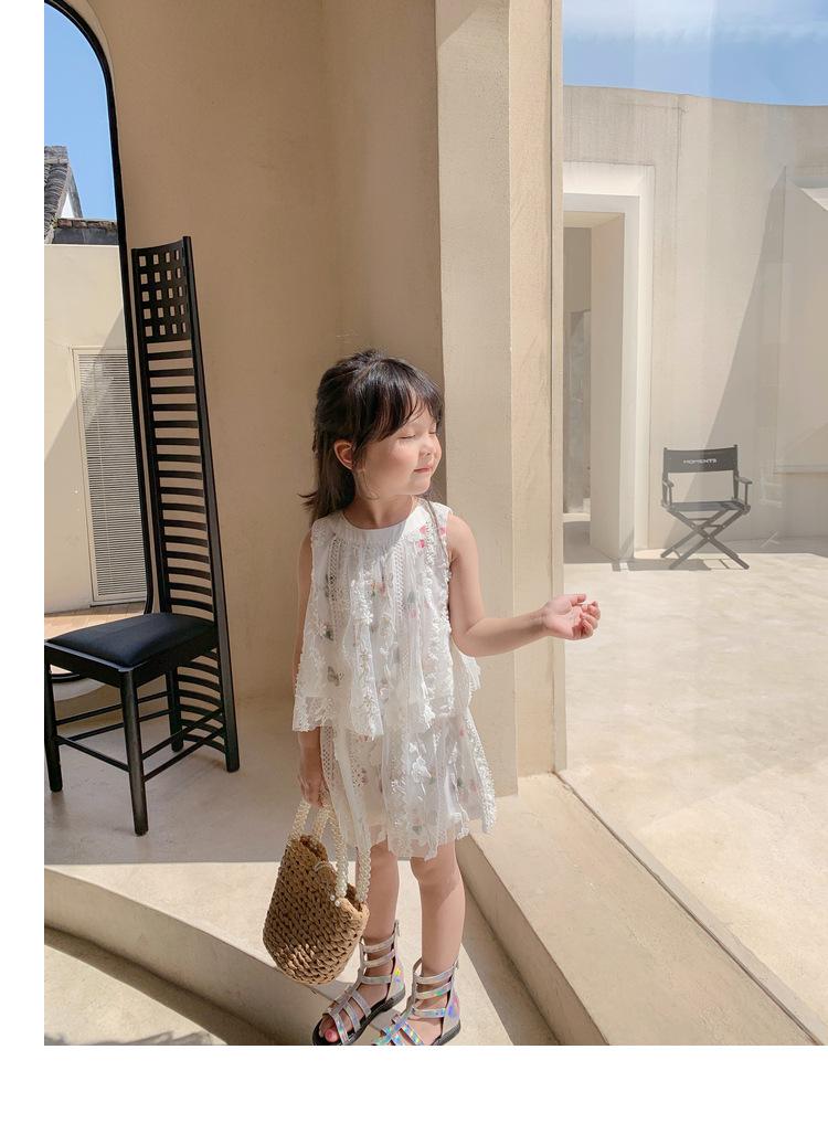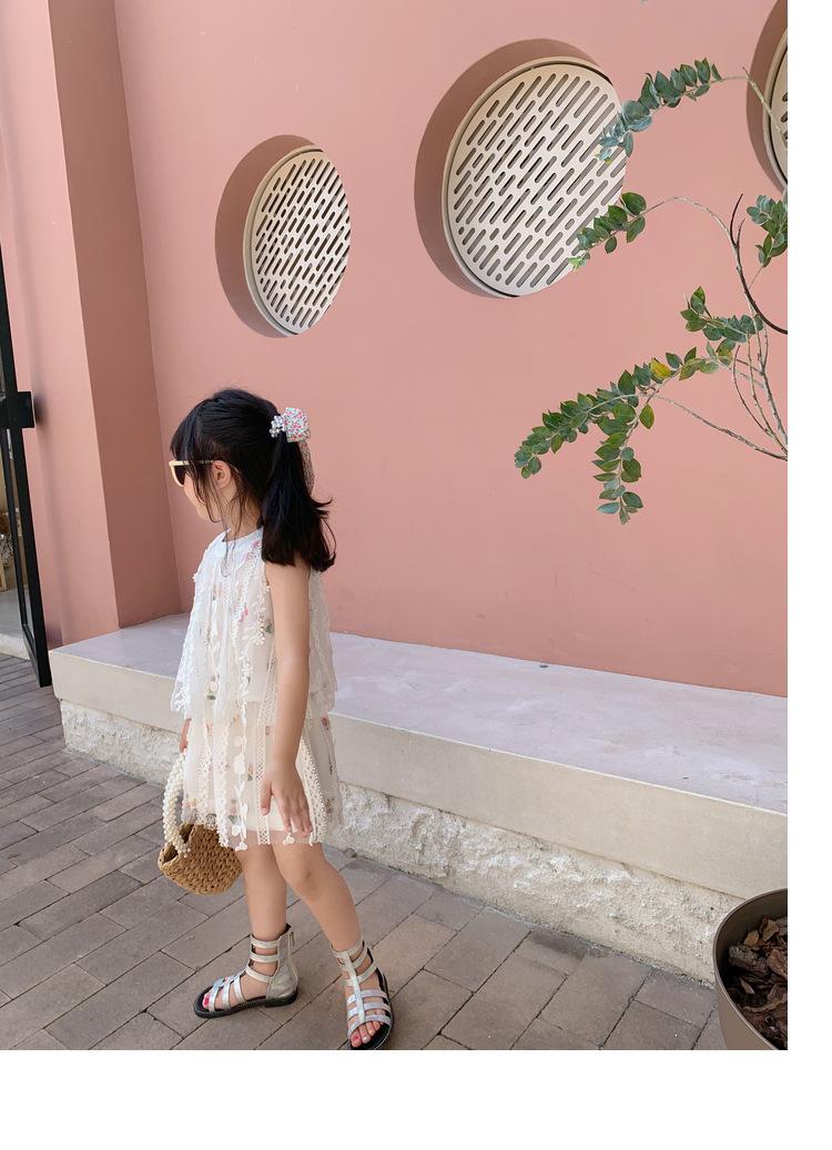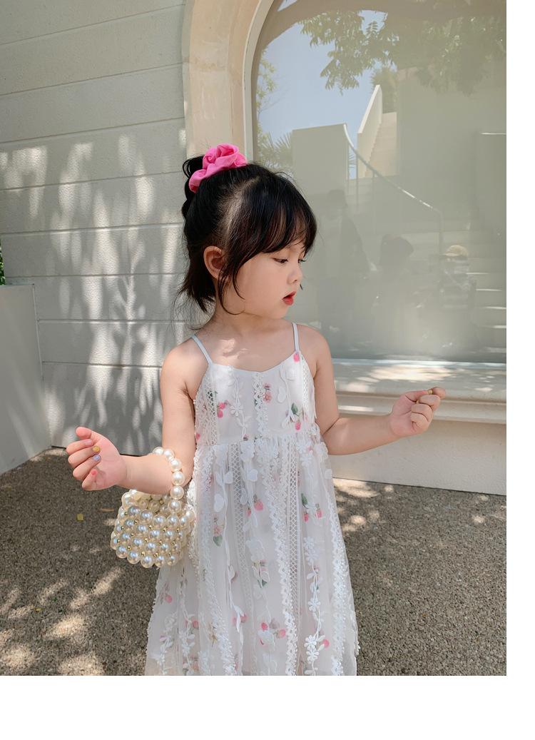Atacado de roupas infantis transfronteiriças terno de menina vestido verão novo infantil flor renda bordado Princesa saia de suspensório