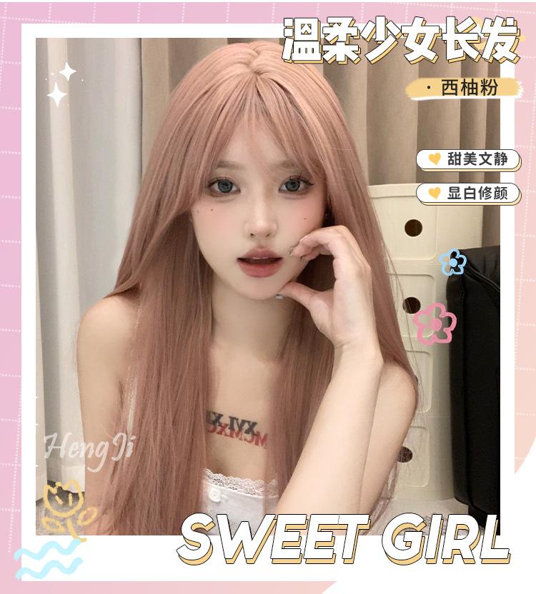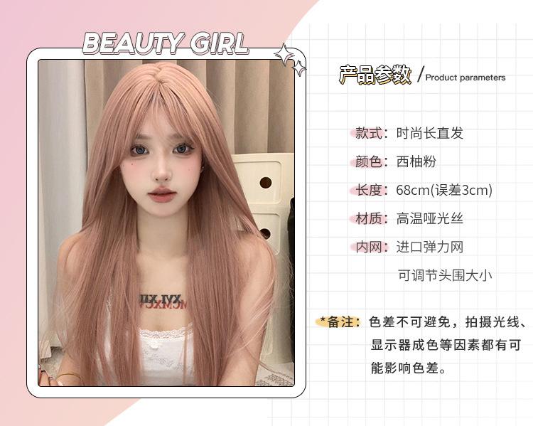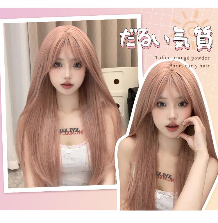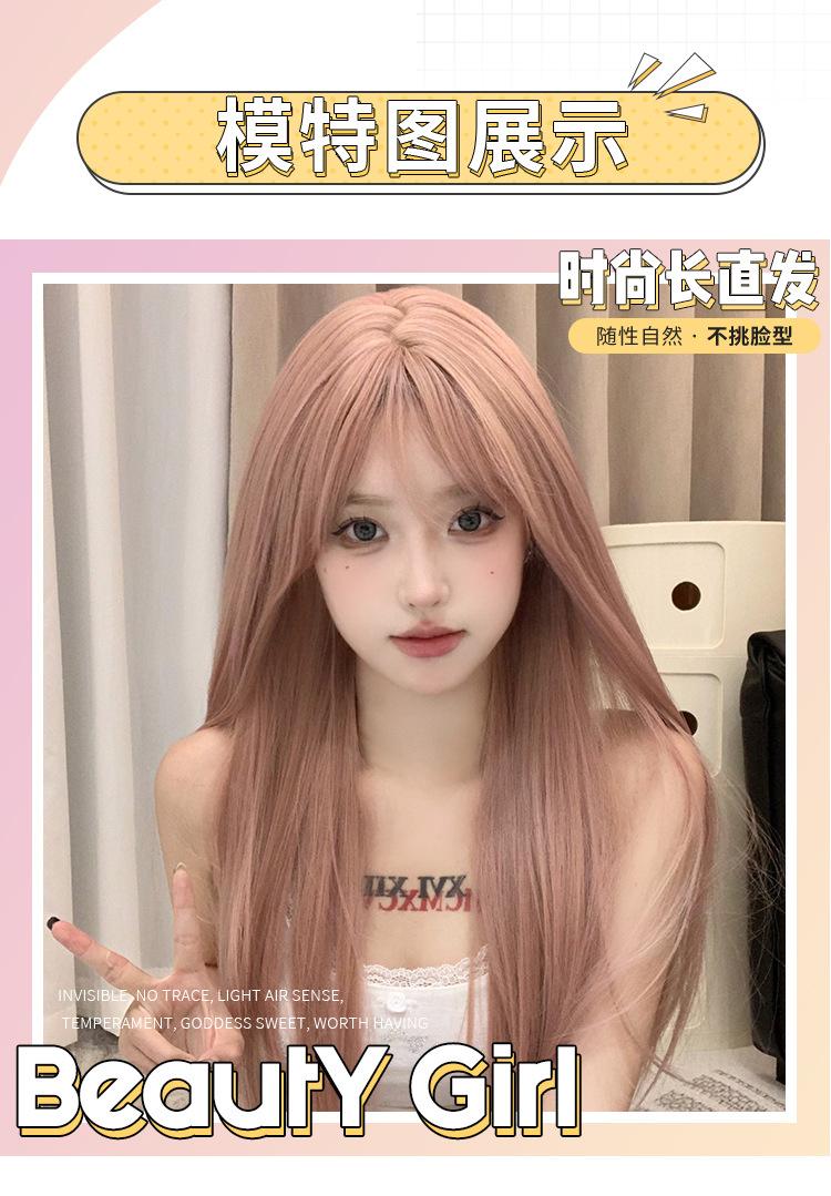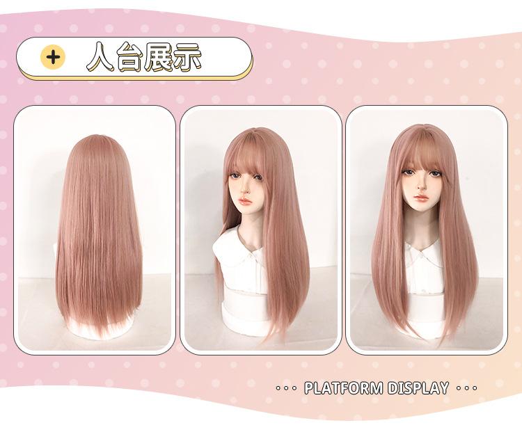 Atacado transfronteiriço peruca feminina de cabelo comprido cobertura total da cabeça simulação natural cabelo longo liso temperamento reparação de rosto rede vermelho franja de ar cobertura de peruca