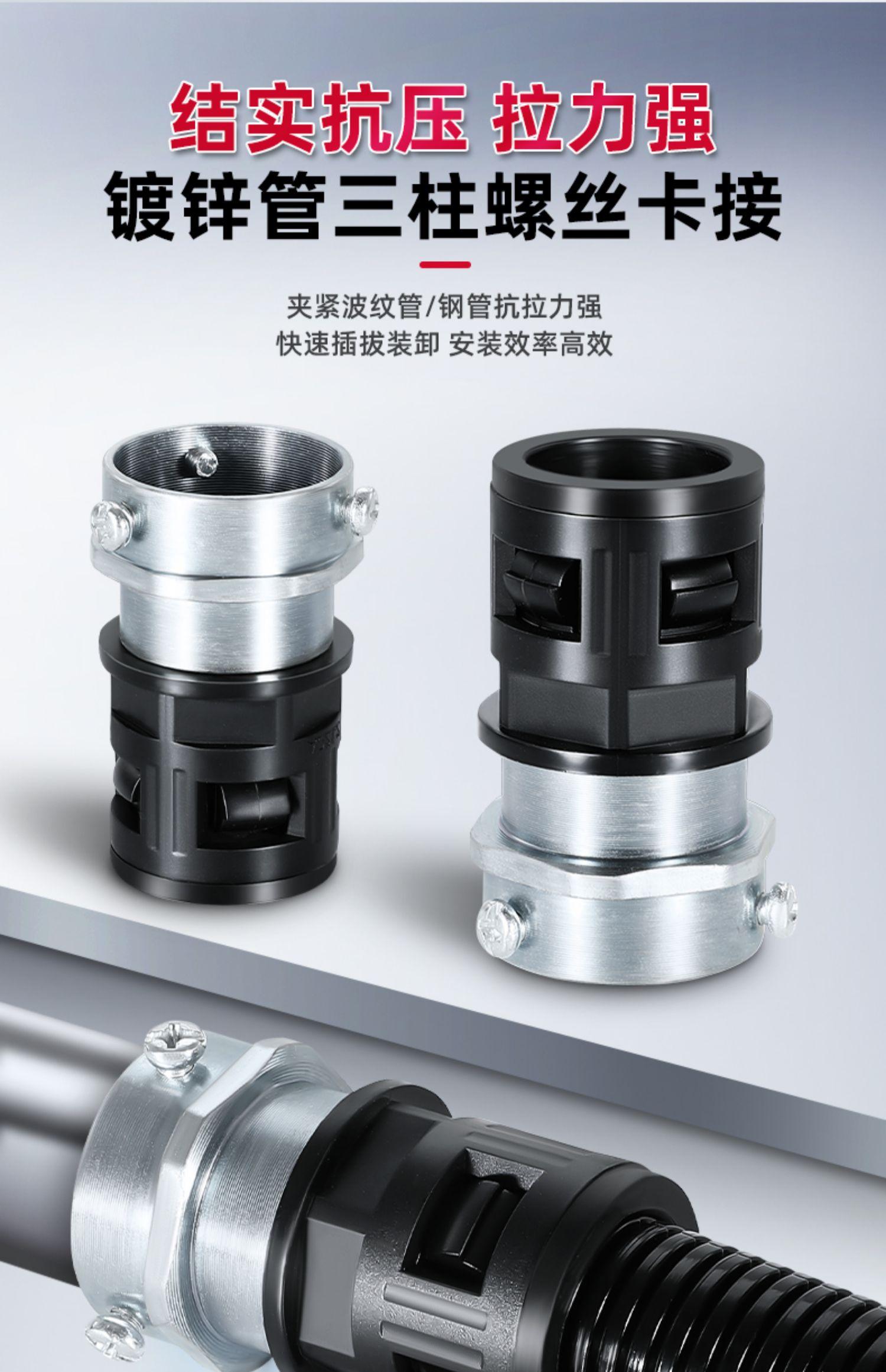 Compre Tubo de Aço Junta de Topo Junta de Tubo Corrugado de Plástico Acessórios de Mangueira Metálicos de Três Colunas Rosca de Fixação Rápida de Nylon Cabeça de Travamento de Tubo no atacado no Joom.pro