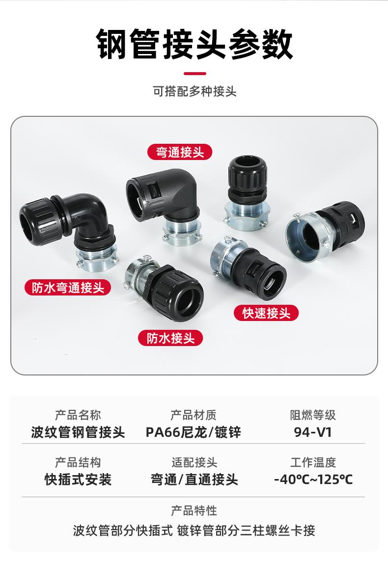 Tubo de Aço Junta de Topo Junta de Tubo Corrugado de Plástico Acessórios de Mangueira Metálicos de Três Colunas Rosca de Fixação Rápida de Nylon Cabeça de Travamento de Tubo