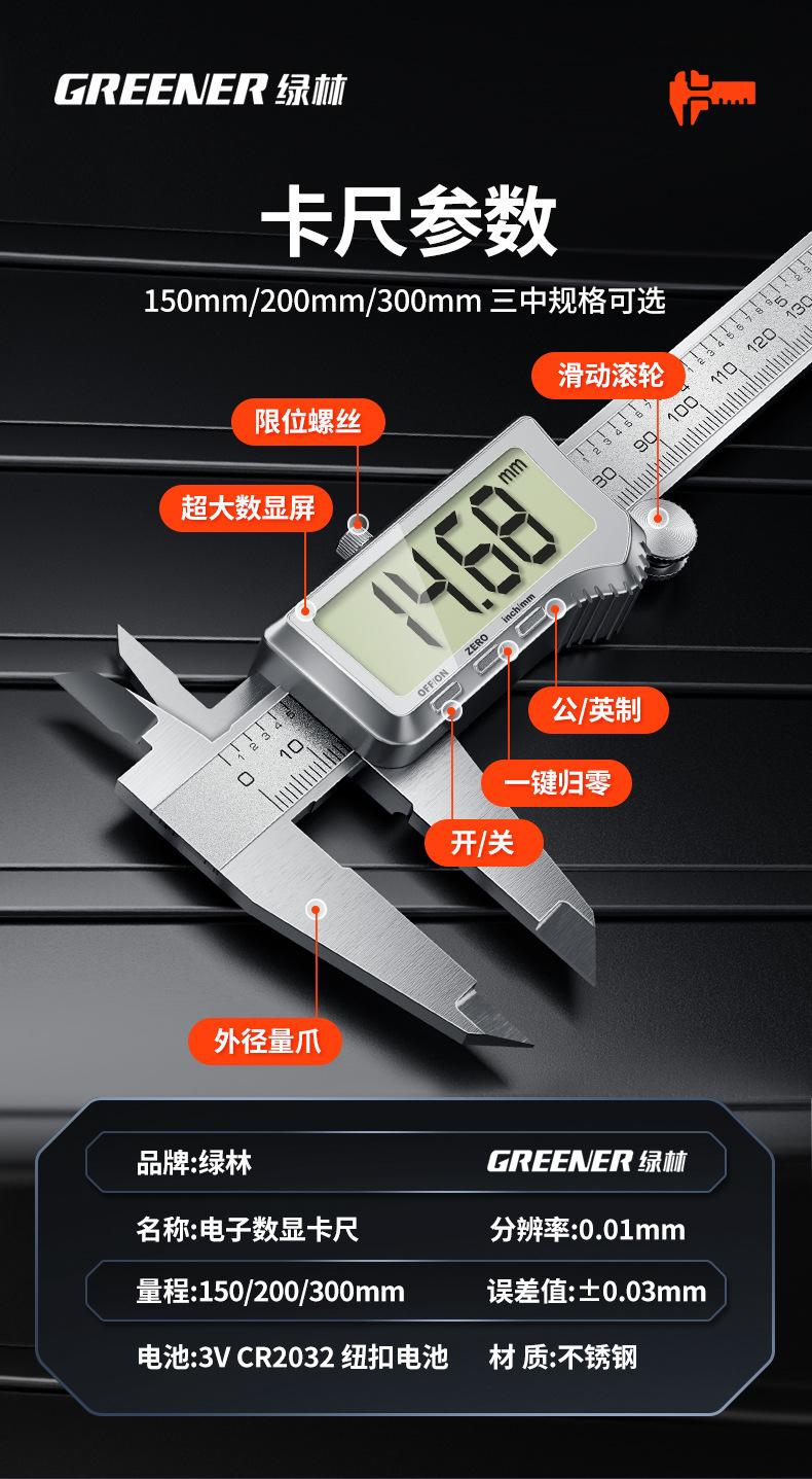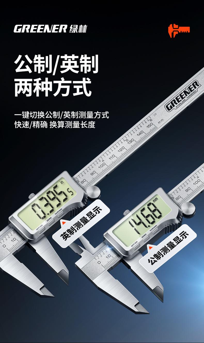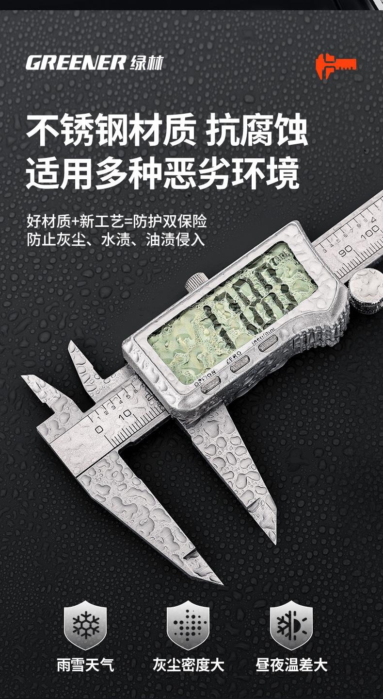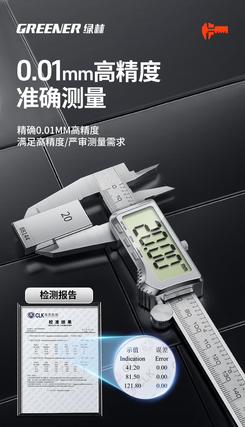 Paquímetro vernier eletrônico Greenforest display digital medidor de profundidade atacado alta precisão industrial joalheria pulseira texto play cartão especial