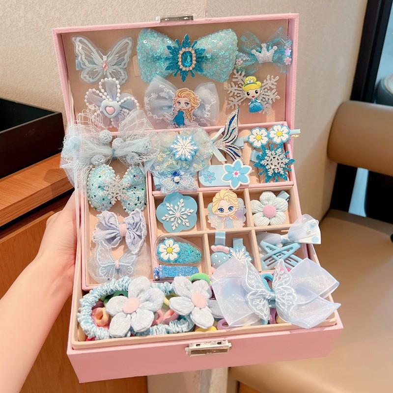 Blue elsa hairpin hair rope 131-piece set (with gift box as shown)