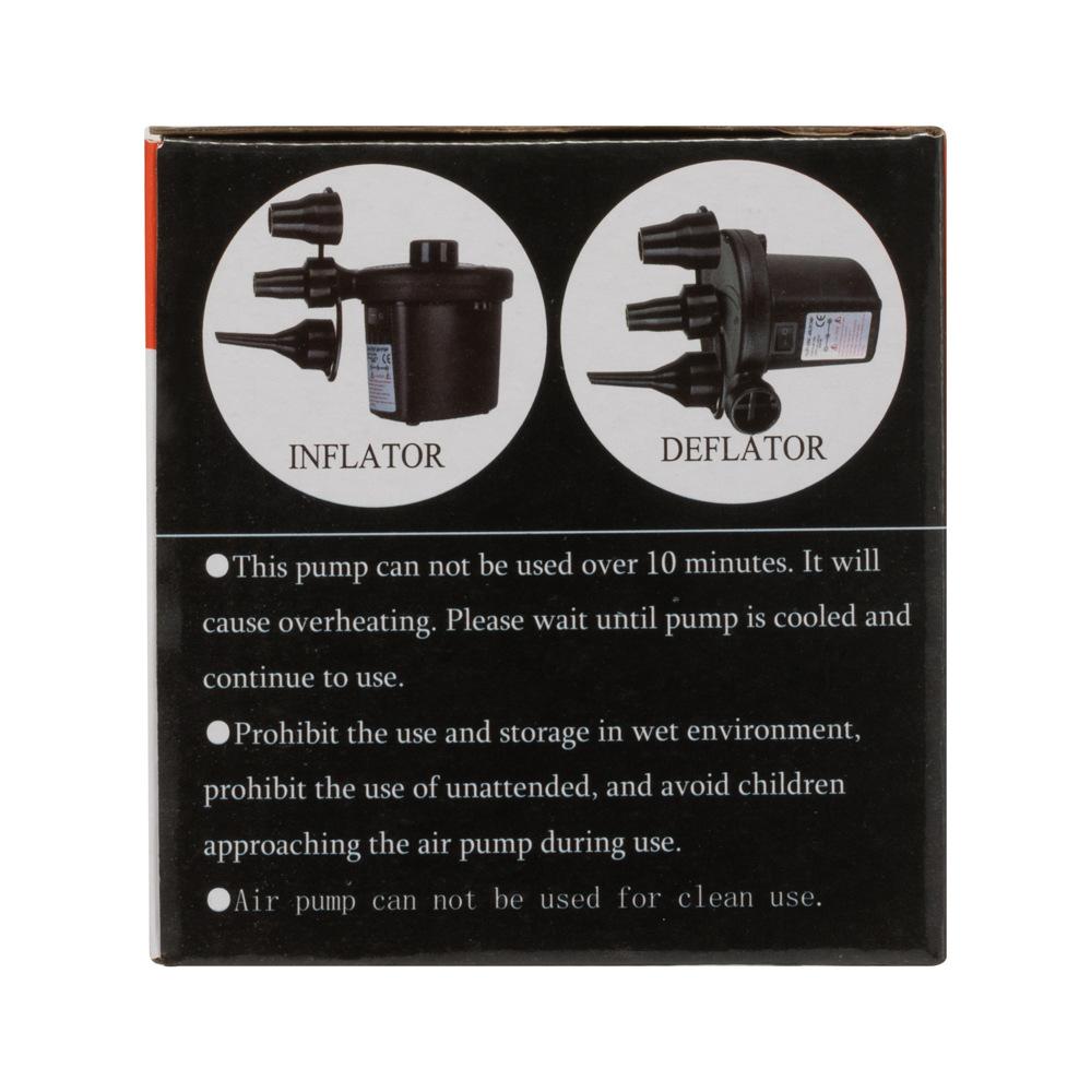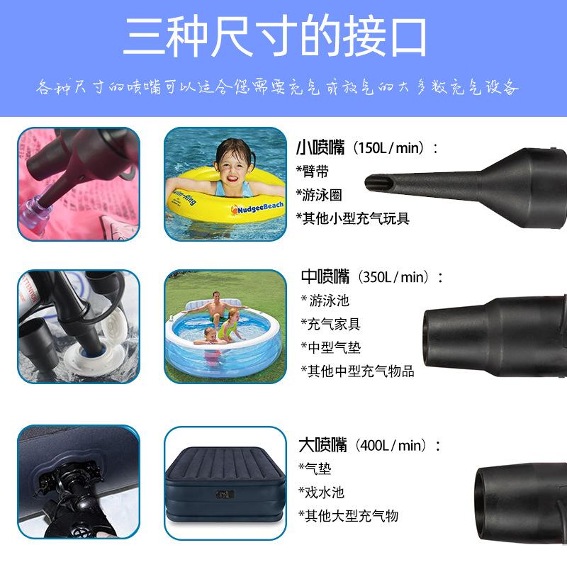 2.Esta bomba pode ser usada para botes infláveis, almofadas de ar, piscinas infláveis, boias, etc. Recomenda-se não usá-la continuamente.20minutos ou mais, porque gerará calor muito alto, o que levará a danos no motor.