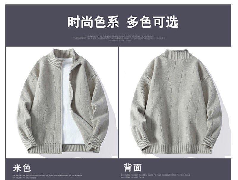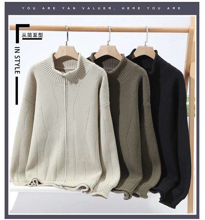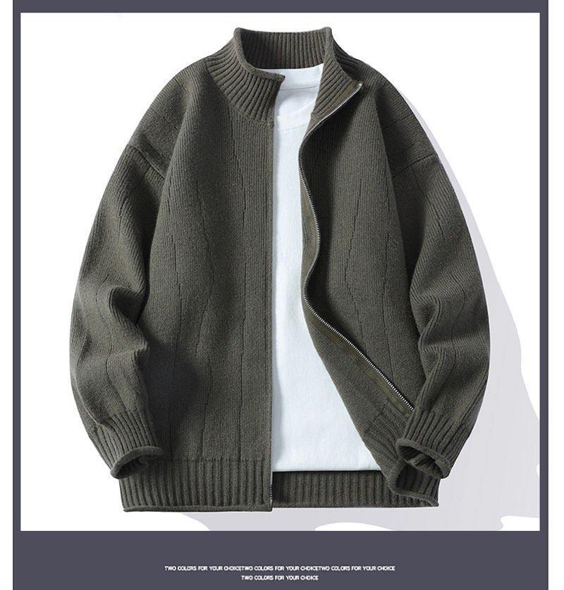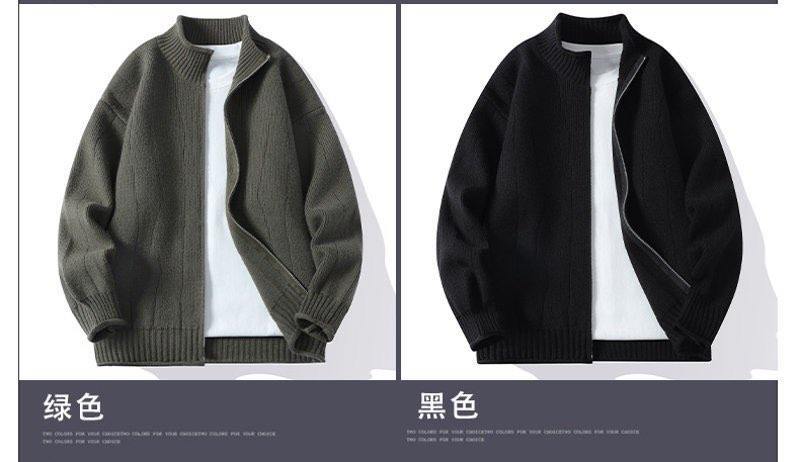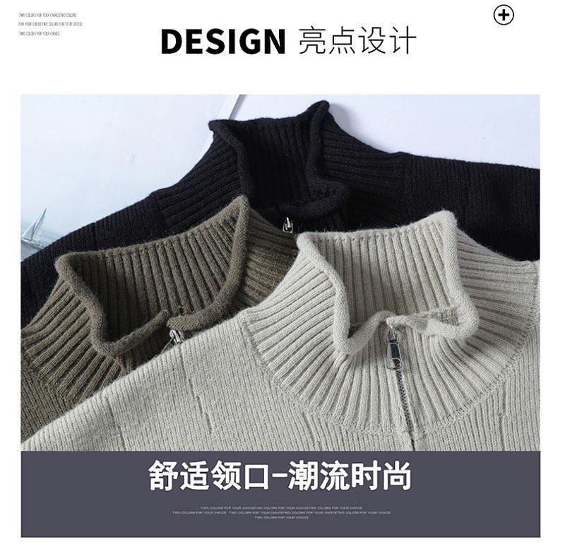 Outwear Masculino Casual da Moda Transfronteiriça Outono/Inverno 2025 Gola Média Alta Espessada Versátil Casual Zíper Suéter Tricotado Masculino