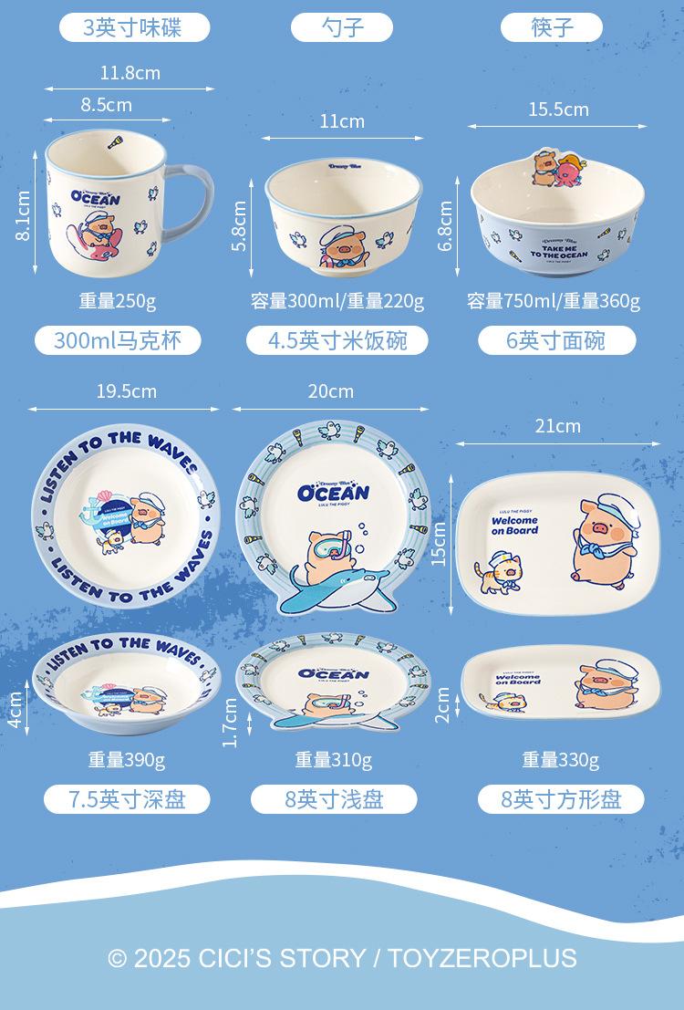 4.5-inch rice bowl, 6inch noodle bowl, 7.5inch deep dish, 8inch shallow pans, 8inch square plate, Breakfast se...