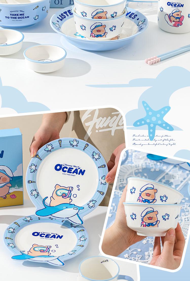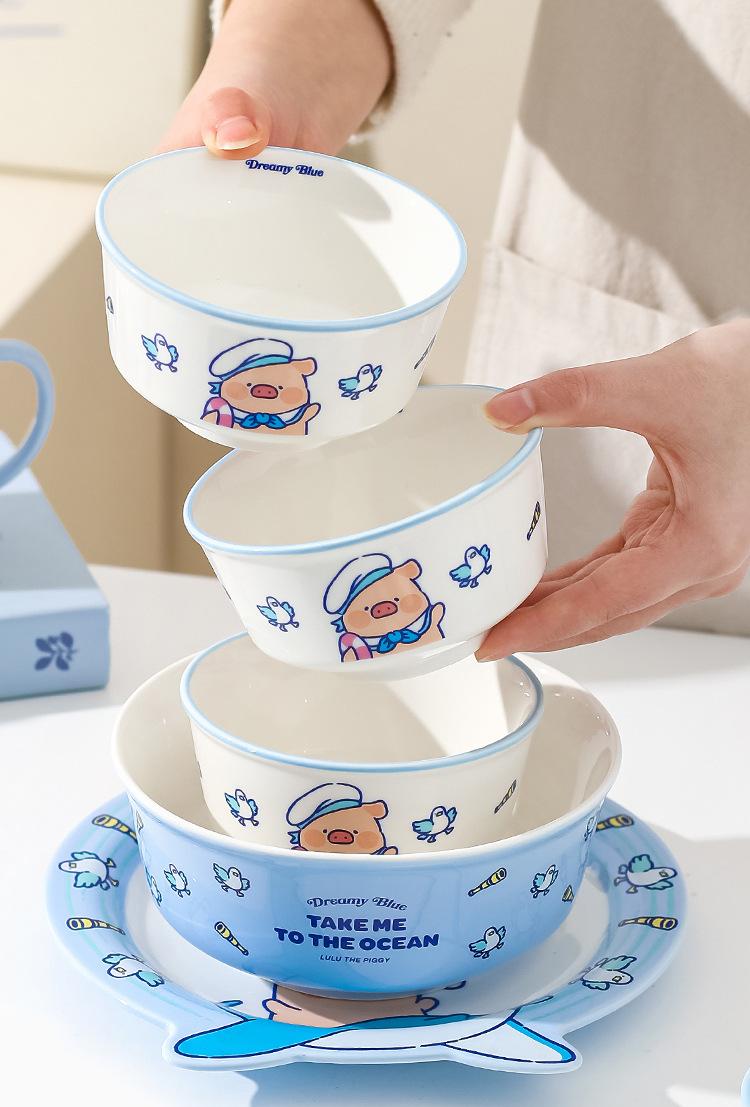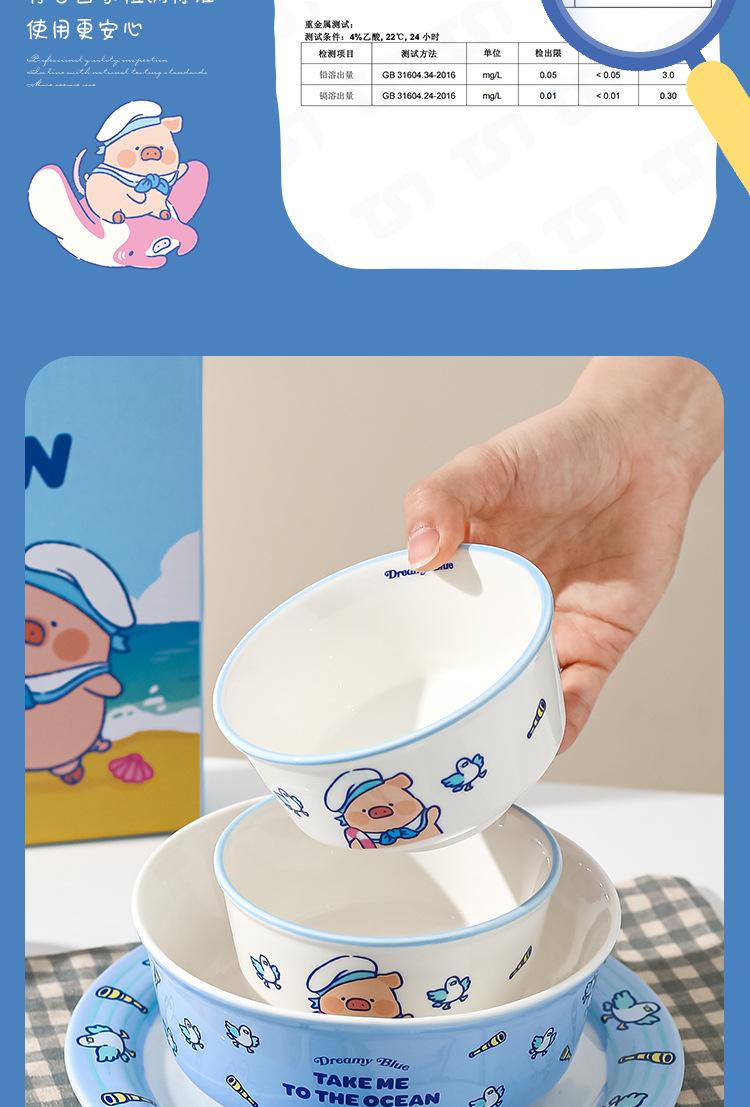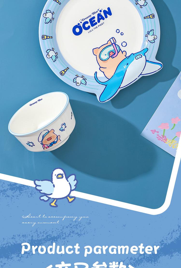 Tigela de Cerâmica Fofa Conjunto de Louça para Uma Pessoa para Crianças para Uso Doméstico Tigela de Sopa Prato de Jantar